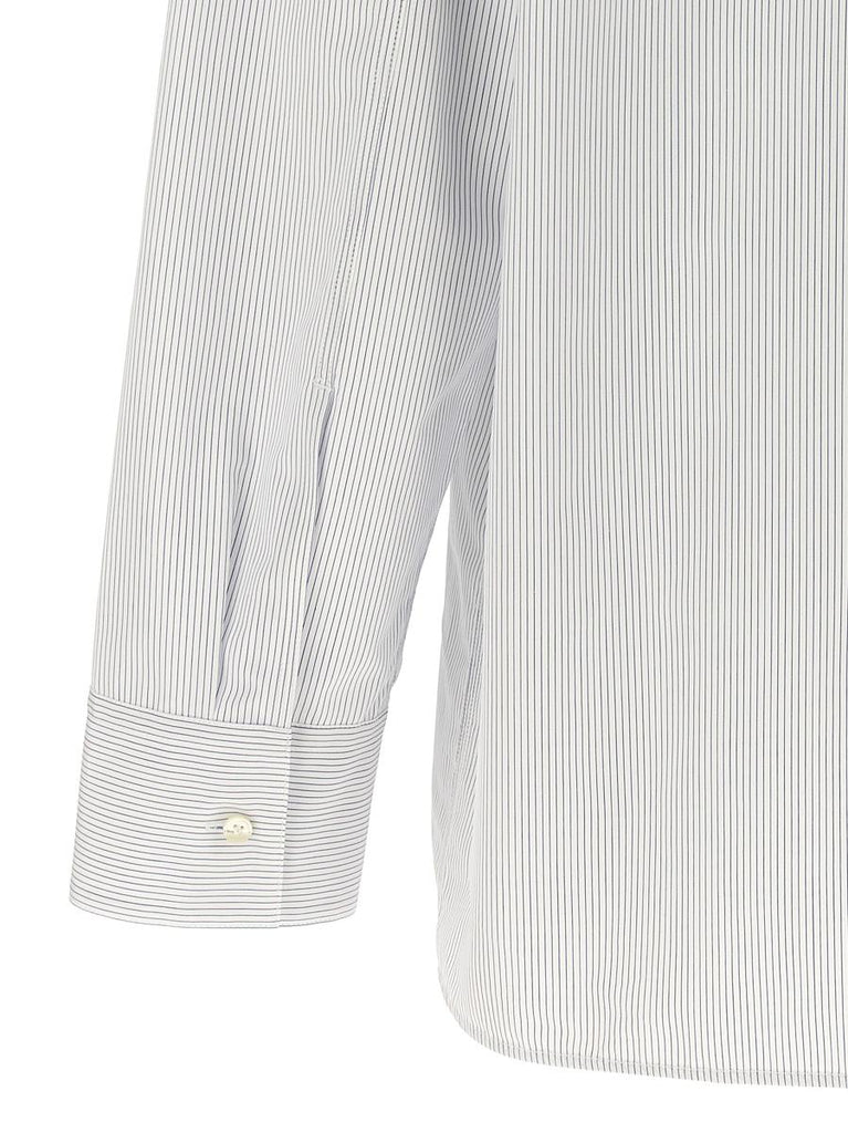 'Tuesday Stripes' striped cotton poplin shirt with front logo embroidery, button closure, front pockets, long cuffed sleeves
