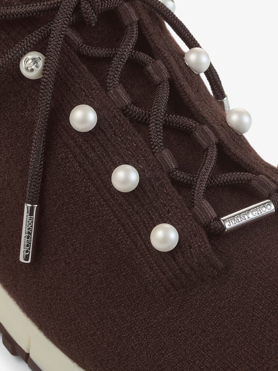 Veles sneakers in mélange cashmere knit, elegant with pearl-decorated eyelets. The sock-like upper provides comfort and lightness, while the rubber sole ensures flexibility. Perfect for refined, contemporary style. Order them now!