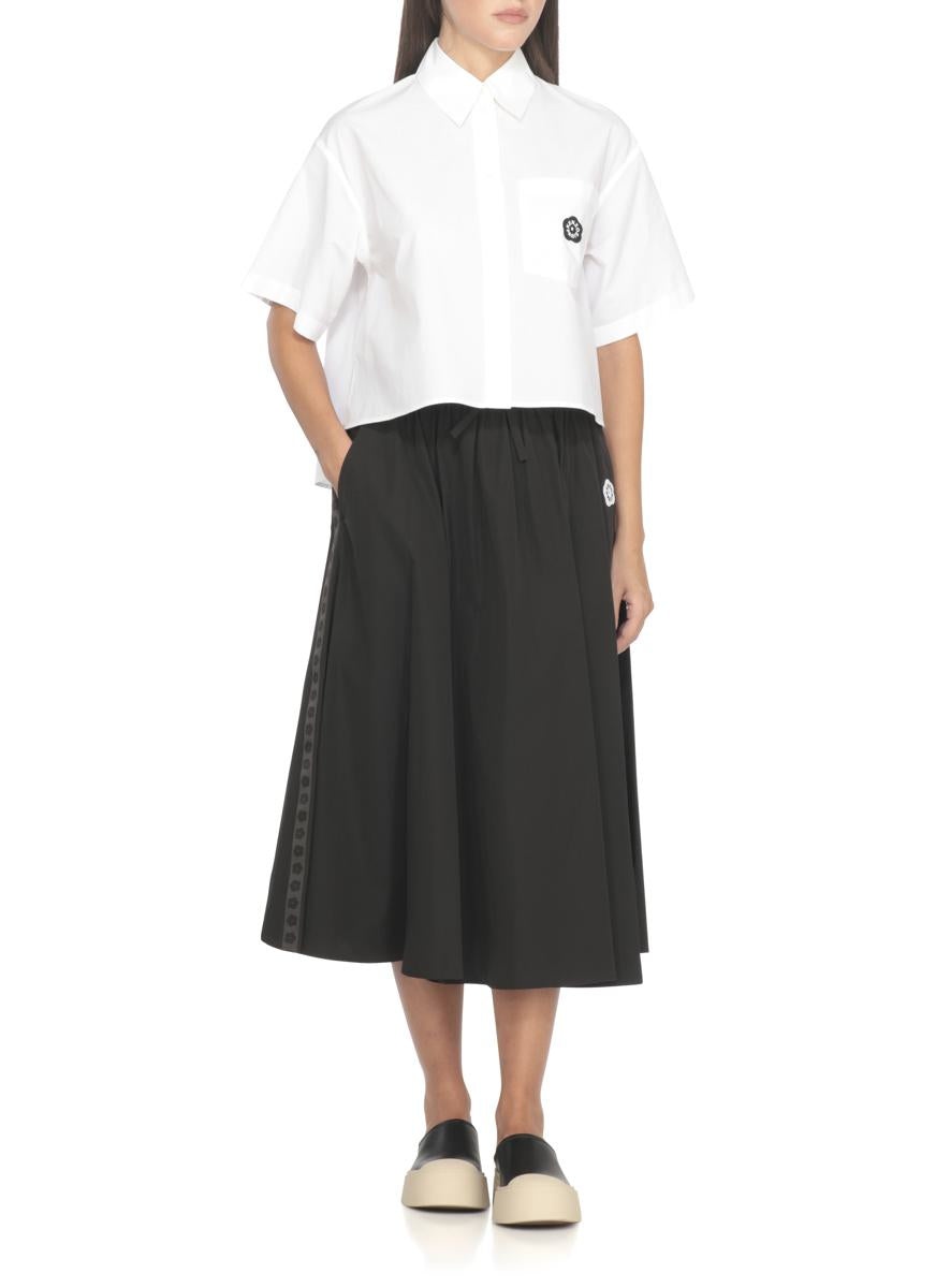 - White Kenzo cotton cropped shirt for woman - Collar - Short sleeves - One chest pocket with contrasting color embroidered Boke Flower 2.0 logo - Front buttons fastening - Asymmetric hem