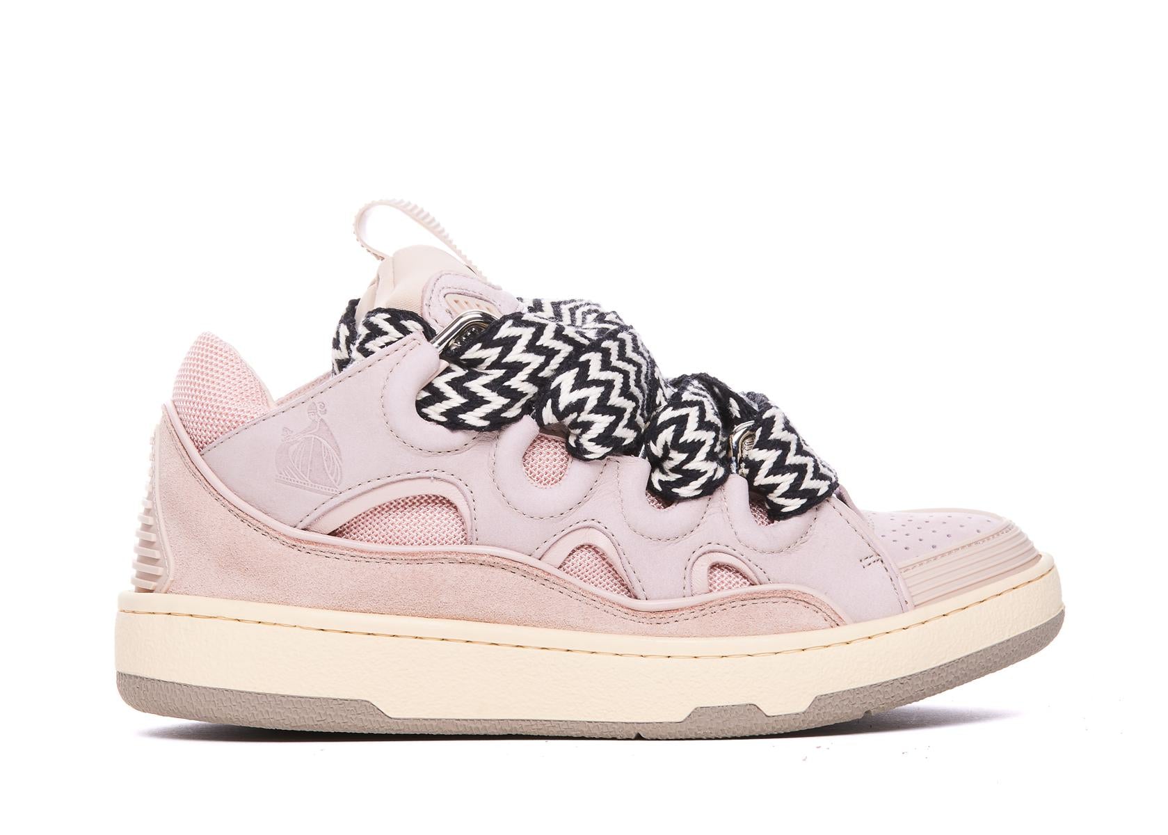Lanvin Curb Sneakers, Round Toe, Lace Closure, Leather And Fabric Upper, Rubber Sole, EU SIZE (IT)