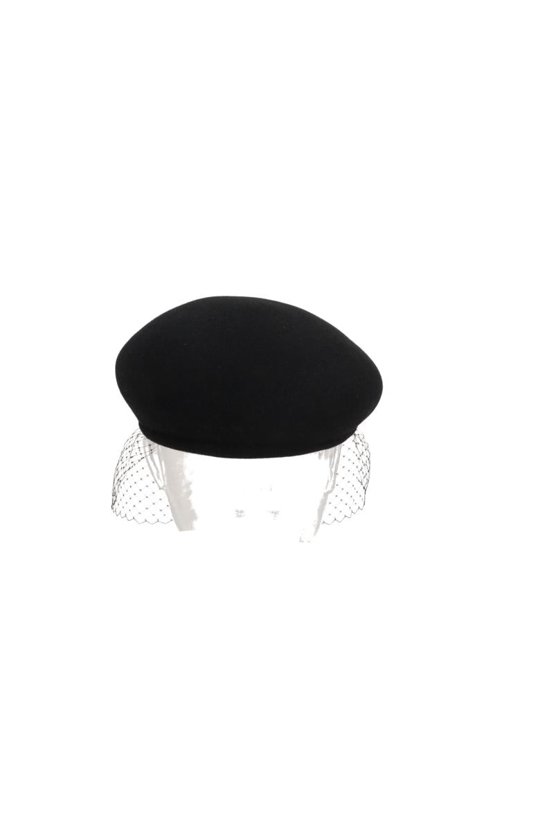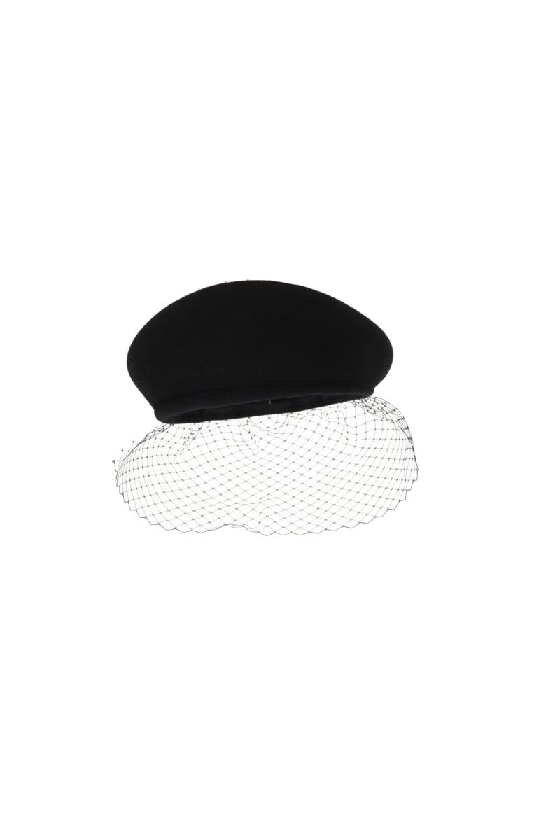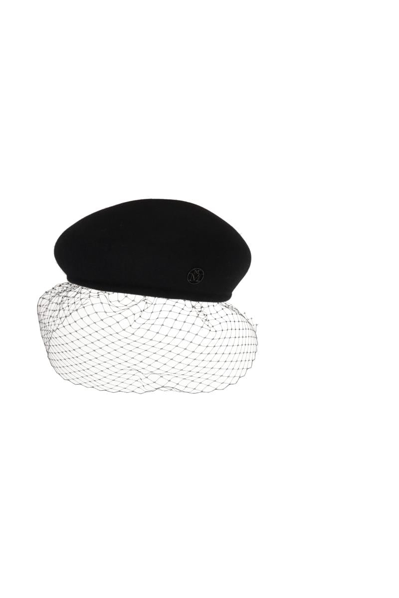 Maison Michel's beret crafted in black felt with tone-on-tone mesh veil. The design is completed by the unmistakable metal logo detailing.