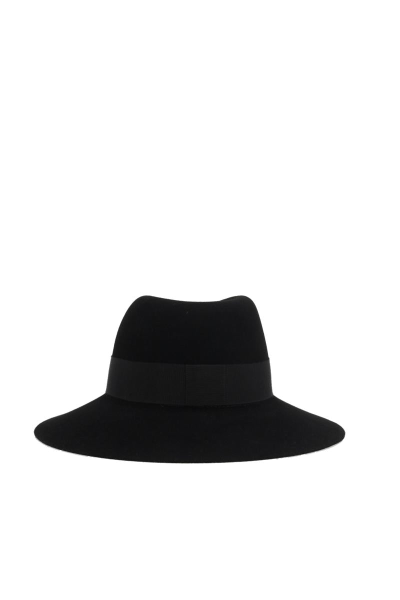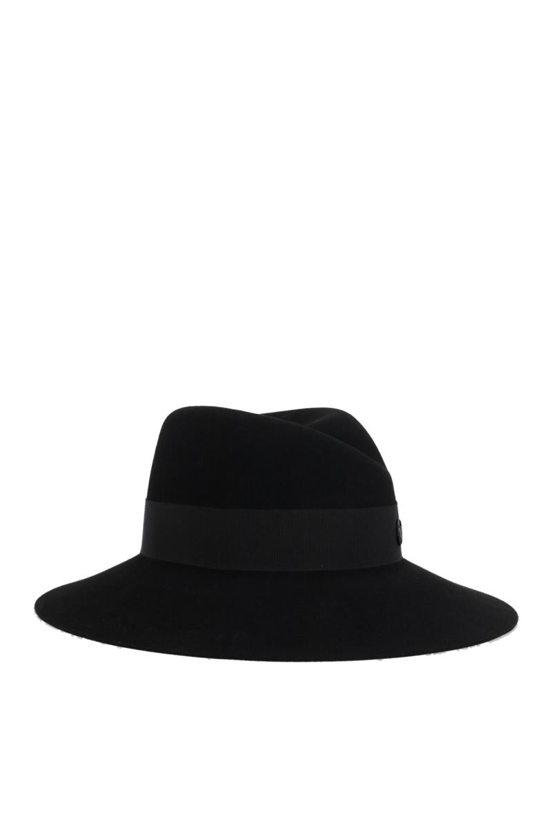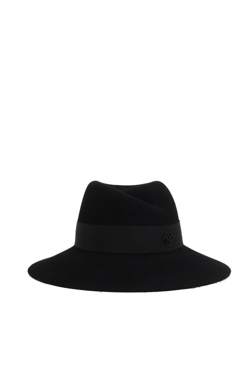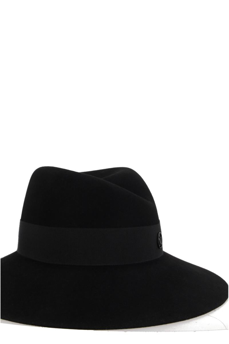 Maison Michel's fedora hat crafted in black felt embellished by tone-on-tone gros grain ribbon and the unmistakable metal logo detailing.