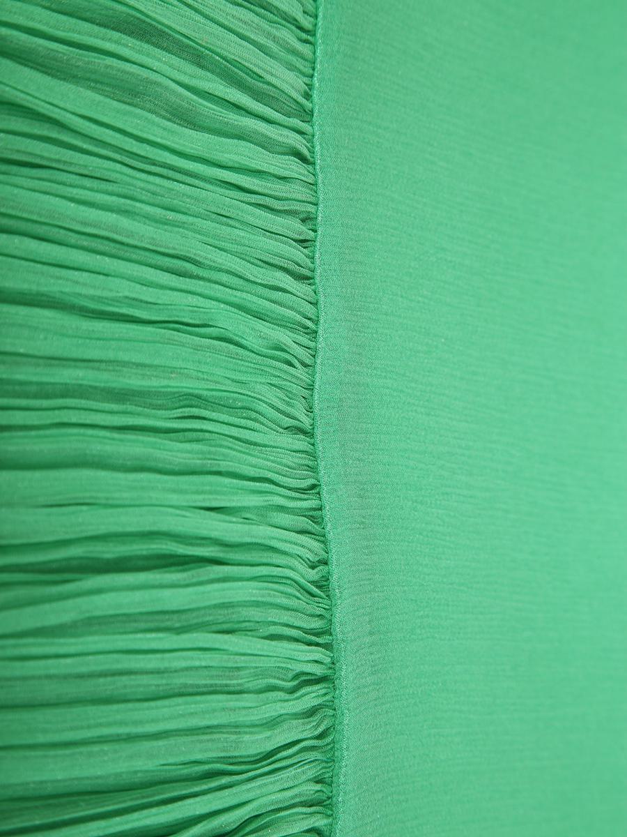 Green Gio stole by Maria Lucia Hohan; seductive and feminine, the designer's creations turn every woman into a diva. Satin finish. Pleated edges. Rectangular froma. Slogan tag patch. Color: green
