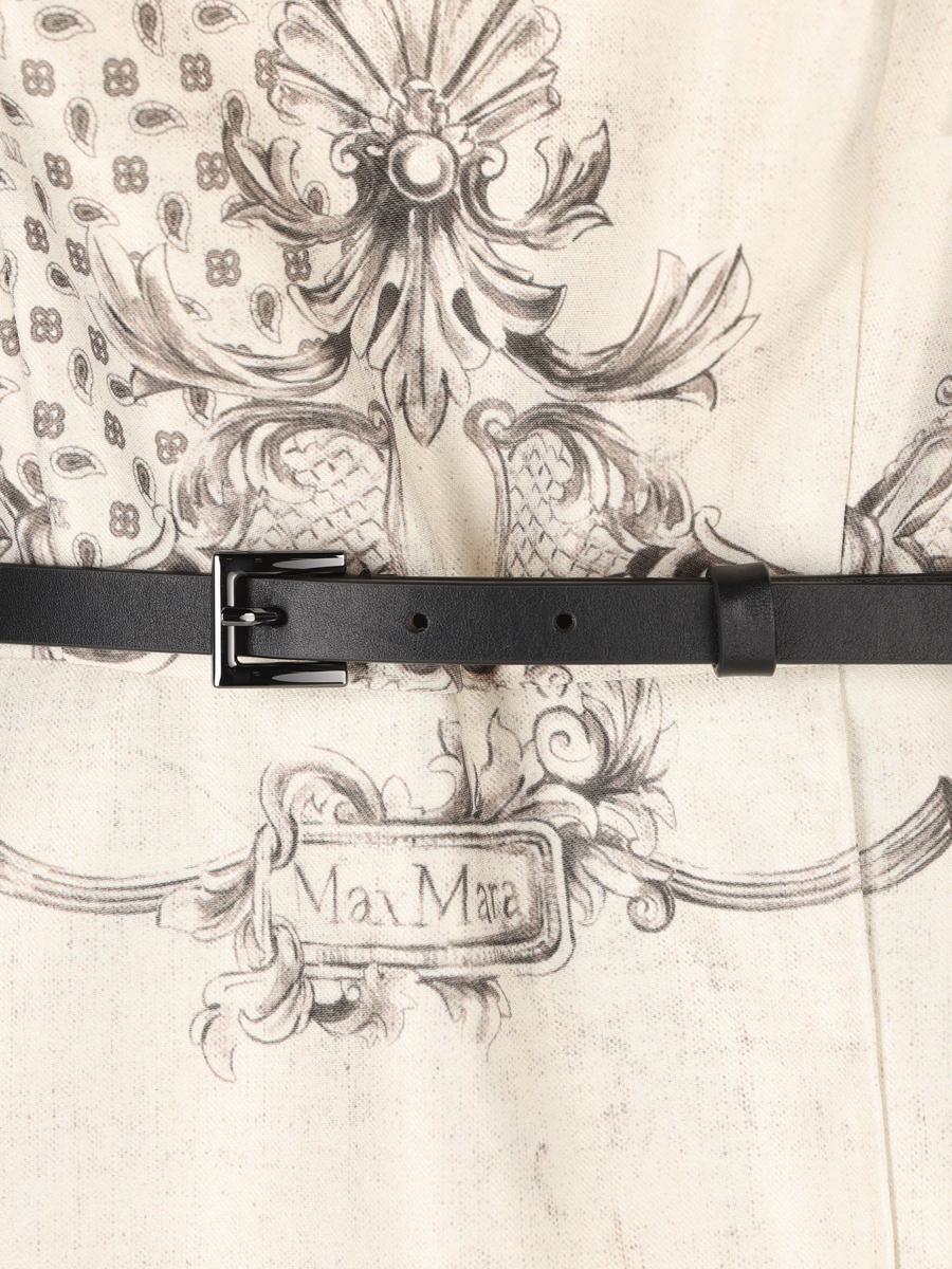 Max Mara's chemisier dress is made of all-over printed mikado and features a flared sleeveless silhouette with a cut-out waist, shirt collar, and removable lavallier. The double leather and fabric belt, back zipper closure and refined print in ivory hue turn this garment into an elegant ready-to-wear choice. - Material: 100 percent polyester - Color: white - Lining: 95 percent acetate, 5 percent elastane - Round neck with removable shirt collar and bow tie - Back zipper closure - Inserted side pockets - Comes with two belts: leather and matching fabric - Made in Italy - Item code: 2611221041600001