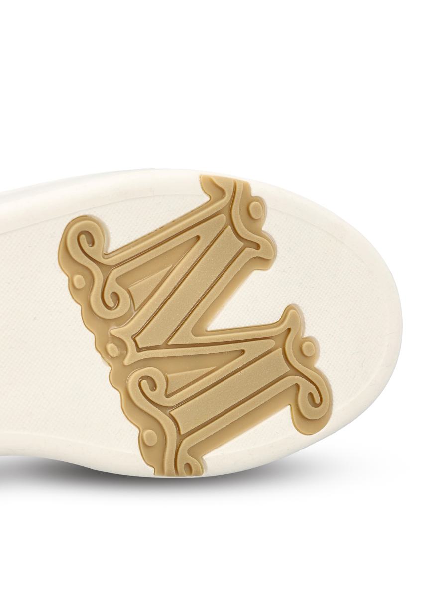 Max Mara Maxi Wk camel-colored leather sneakers interpret casual style with a luxury touch. The clean line is enriched by the tone-on-tone side maxi logo, while the lightweight rubber sole ensures comfort and practicality. A versatile and distinctive model, perfect for completing urban and contemporary looks. - Upper: 100% camel; 100% calfskin - Color: beige - Lining: 61% polyester, 28% polyamide, 11% elastane - Chunky rubber sole customized with maxi M Monogram - Comfortable, high-performance internal footbed - Rubber Max Mara label on the back of the heel - Box included - Item code: 2524766012600001