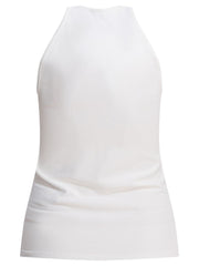 Discover Max Mara's viscose top, an essential and versatile piece for every woman's wardrobe. Made from a viscose blend yarn, this sleeveless top offers a slim fit that flatters the silhouette with elegance. The refined design features an American neckline and triangle cups, ideal for adding a touch of sophistication to any outfit.