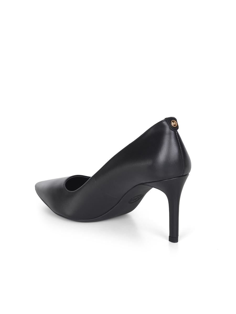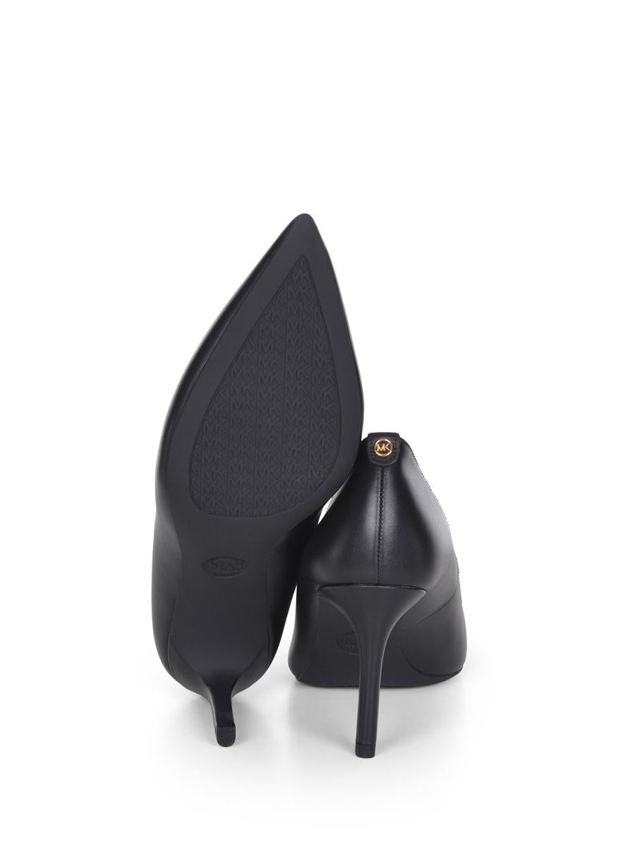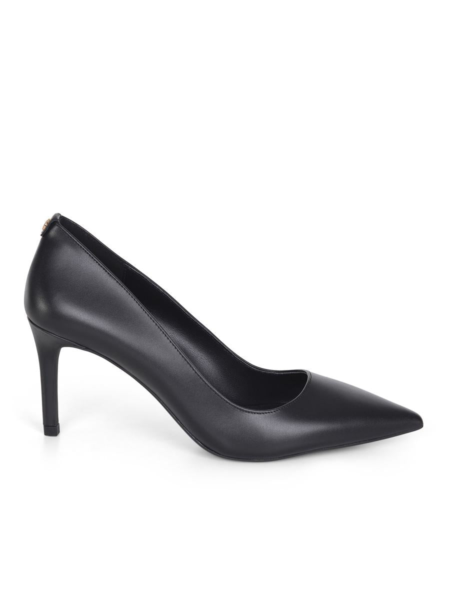 Michael Kors 'Alina Flex' décolleté made of black faux leather. Pointed designer shoe. Lined interior. 'MK' metal logo applied on the back. Rubber sole. Covered heel. Heel height 7.6 cm. Lining made of mixed polyviscose. Sole