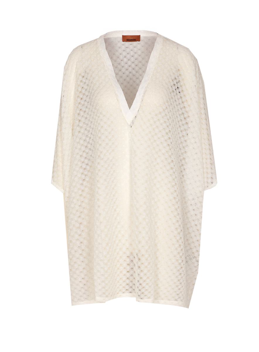 Missoni White Short Lame' Raschel Workmanship Caftan, V-Neck, Lurex, Short Sleeves, US SIZE