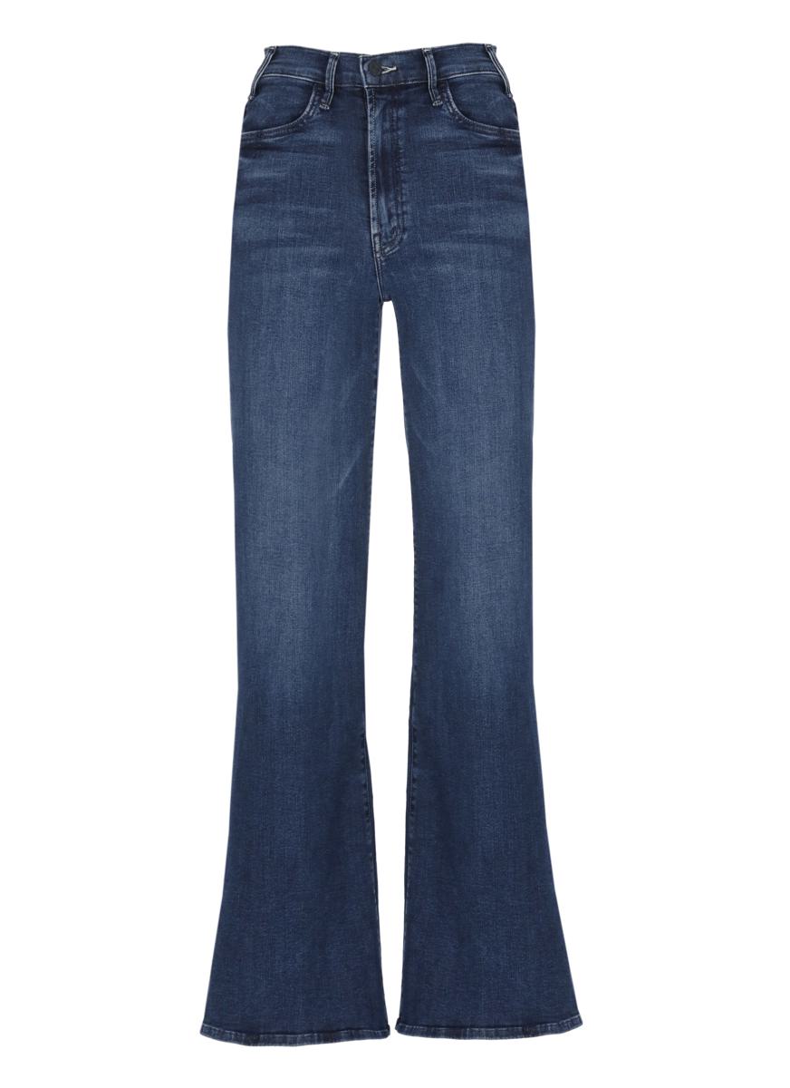 - Blue Mother cotton flared jeans for woman - Belt loops - Front zip and button fastening - Four pockets - High waist