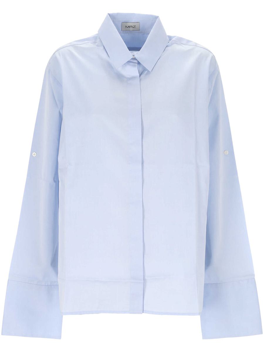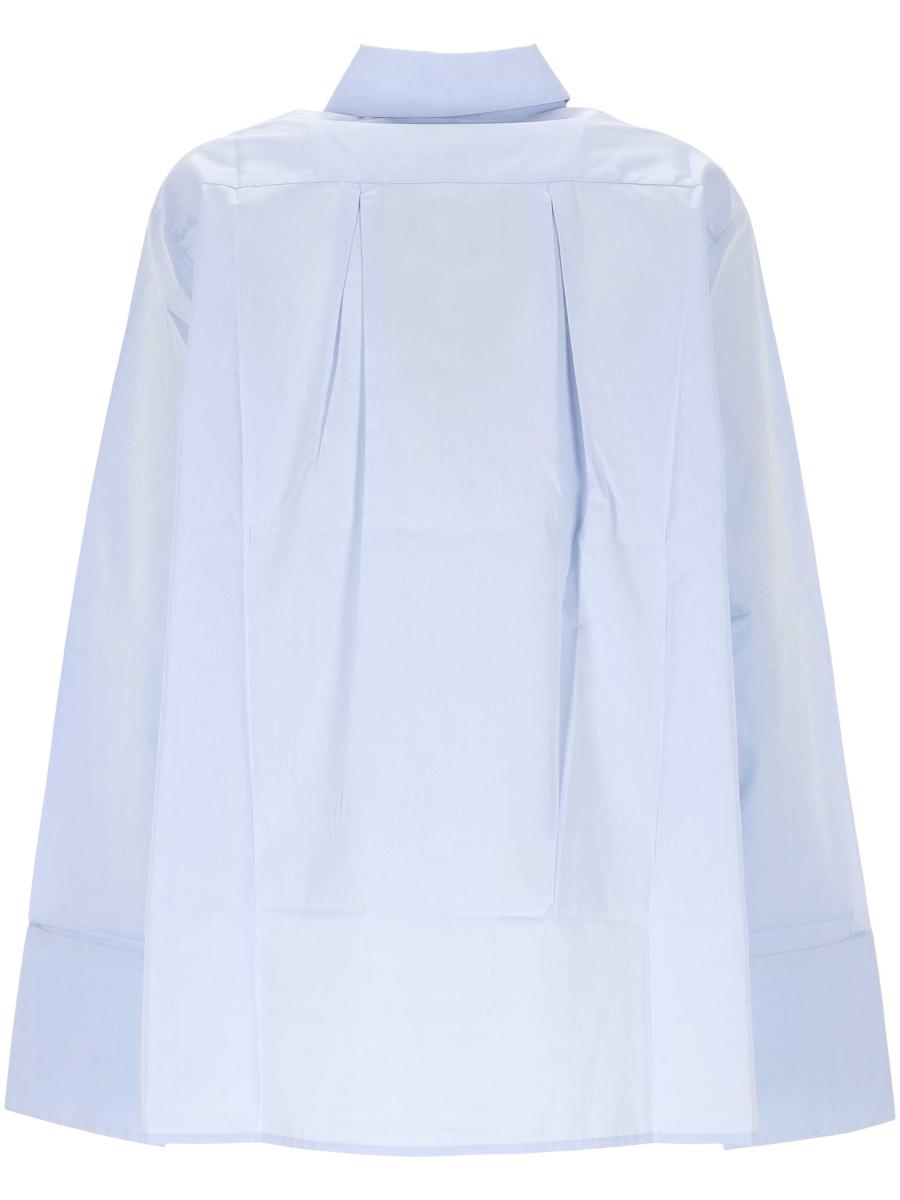 light blue button fastening long sleeves buttoned cuffs layered hem pleated back