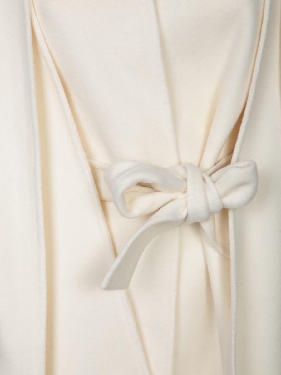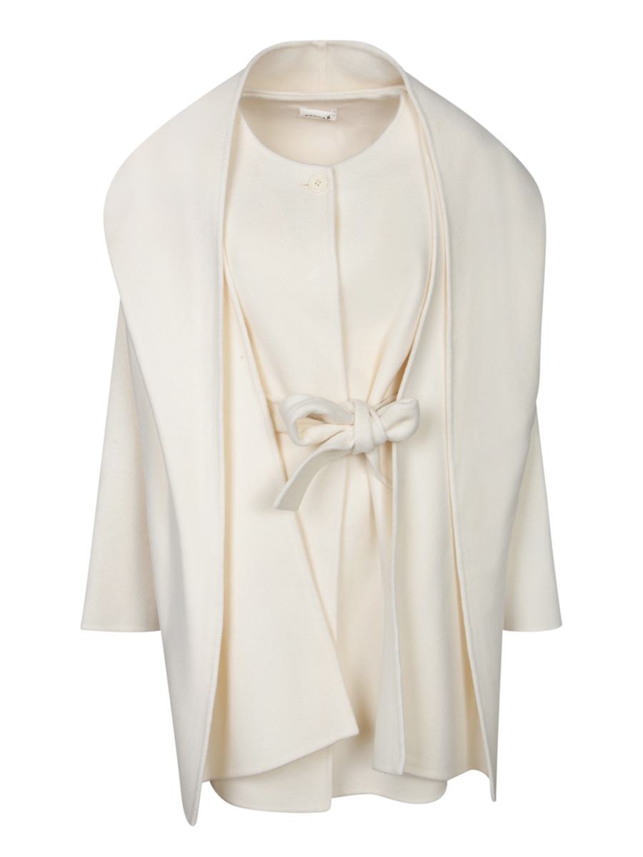 Short coat in softly structured fabric. Single button front closure and bow-style fabric belt.. This elegant PAROSH cream coat features a minimalist yet sophisticated design, crafted with luxuriously soft fabric and a clean, draped silhouette, making it a perfect addition to elevate any autumn wardrobe