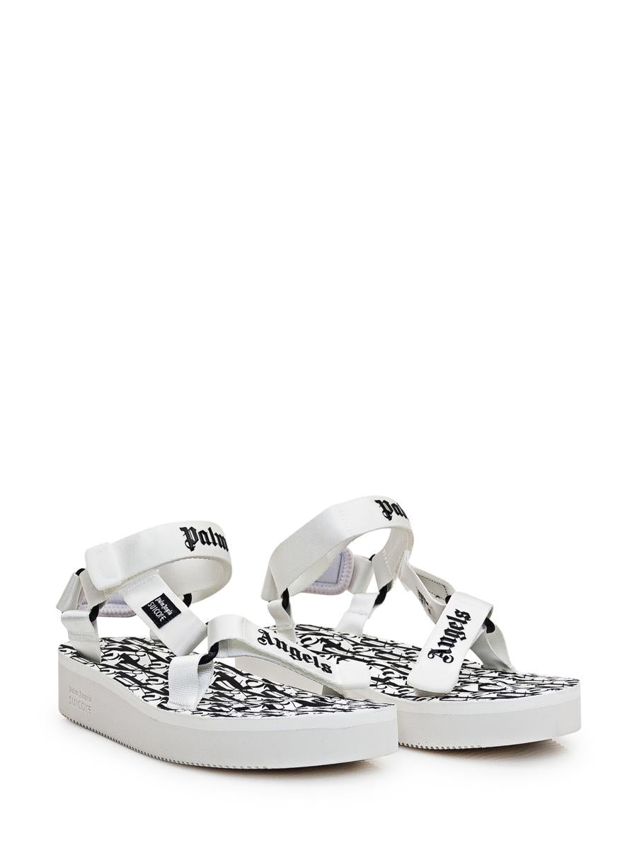 White sandal. Adjustable strappy strap closure. Logo patch on front. Logoed insole.