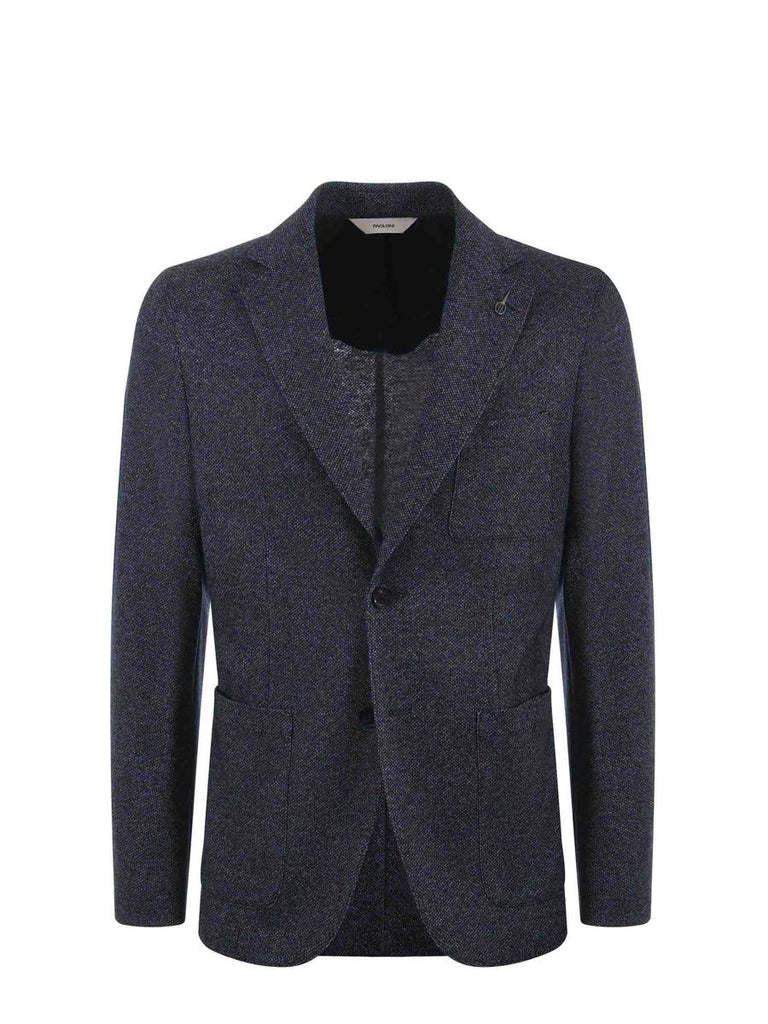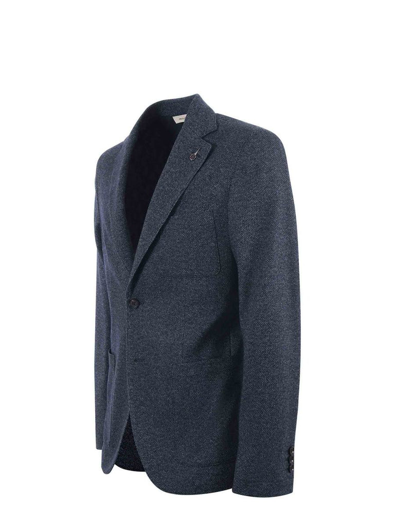 Paoloni honeycomb cotton and wool blend jacket. Warm feel. Classic lapel. 2-button closure. Patch pocket. Patch pockets. Double vent on the back. Unlined. Size in photo 48