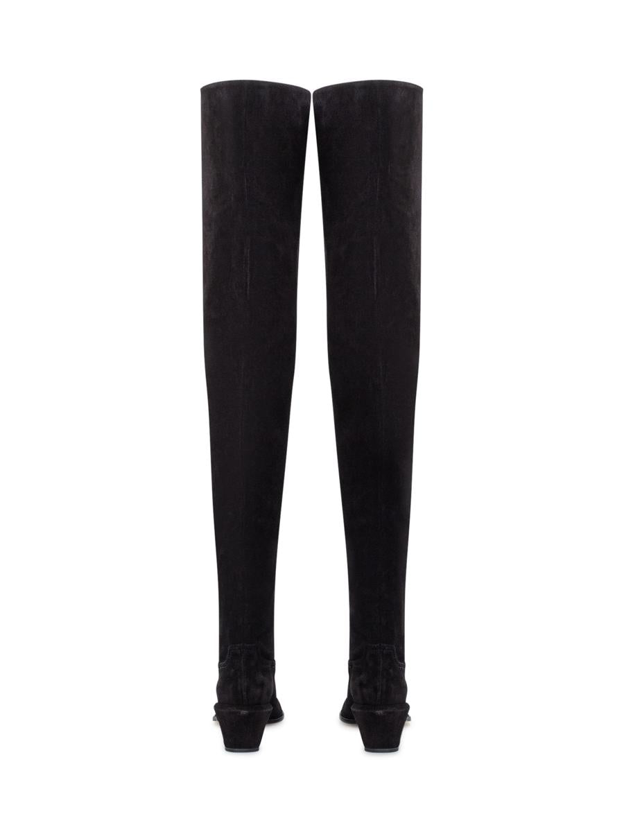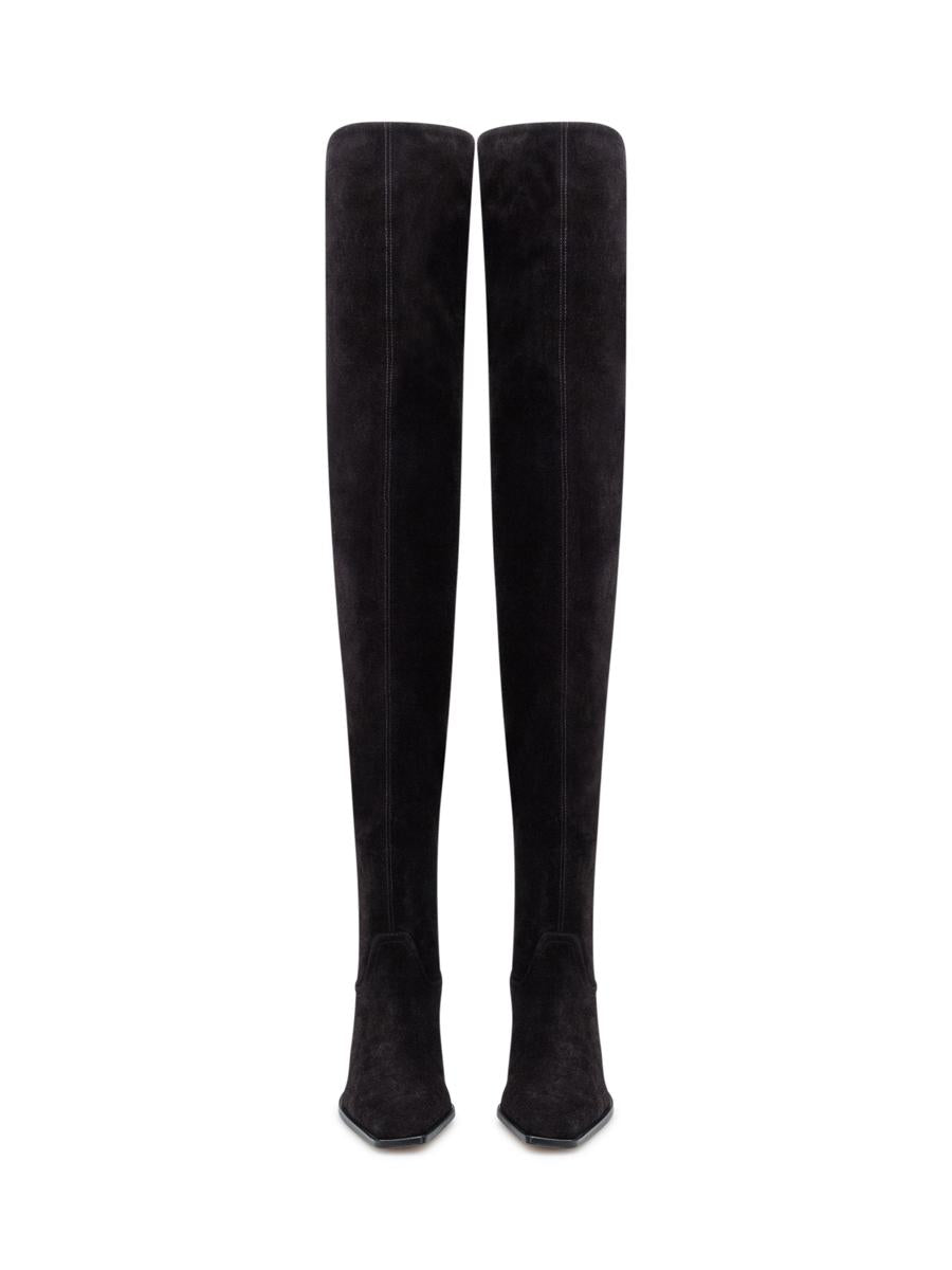 High suede boots with sleek silhouette and tapered toe. The low heel offers everyday comfort. Heel height:5.5