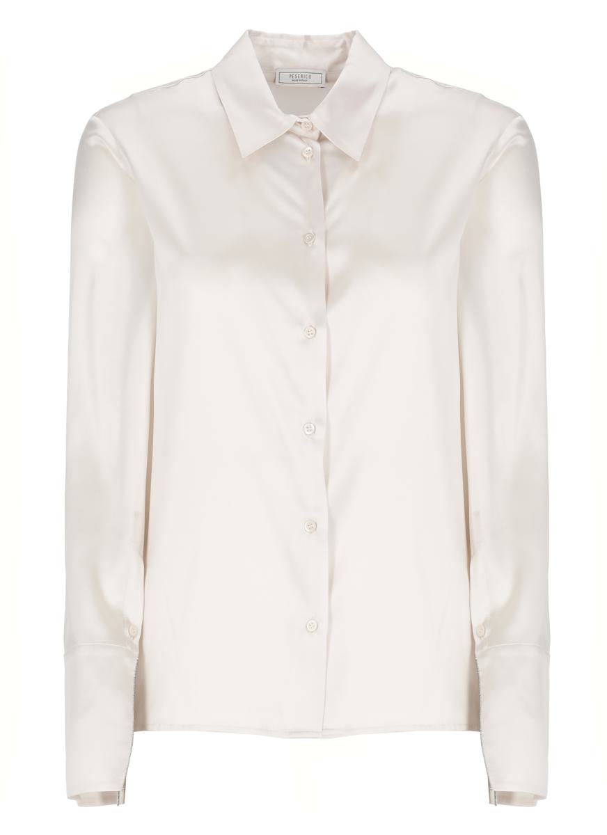 - Pink Peserico silk shirt for woman - Collar - Long sleeve with bright light point details at hem - Front buttons fastening