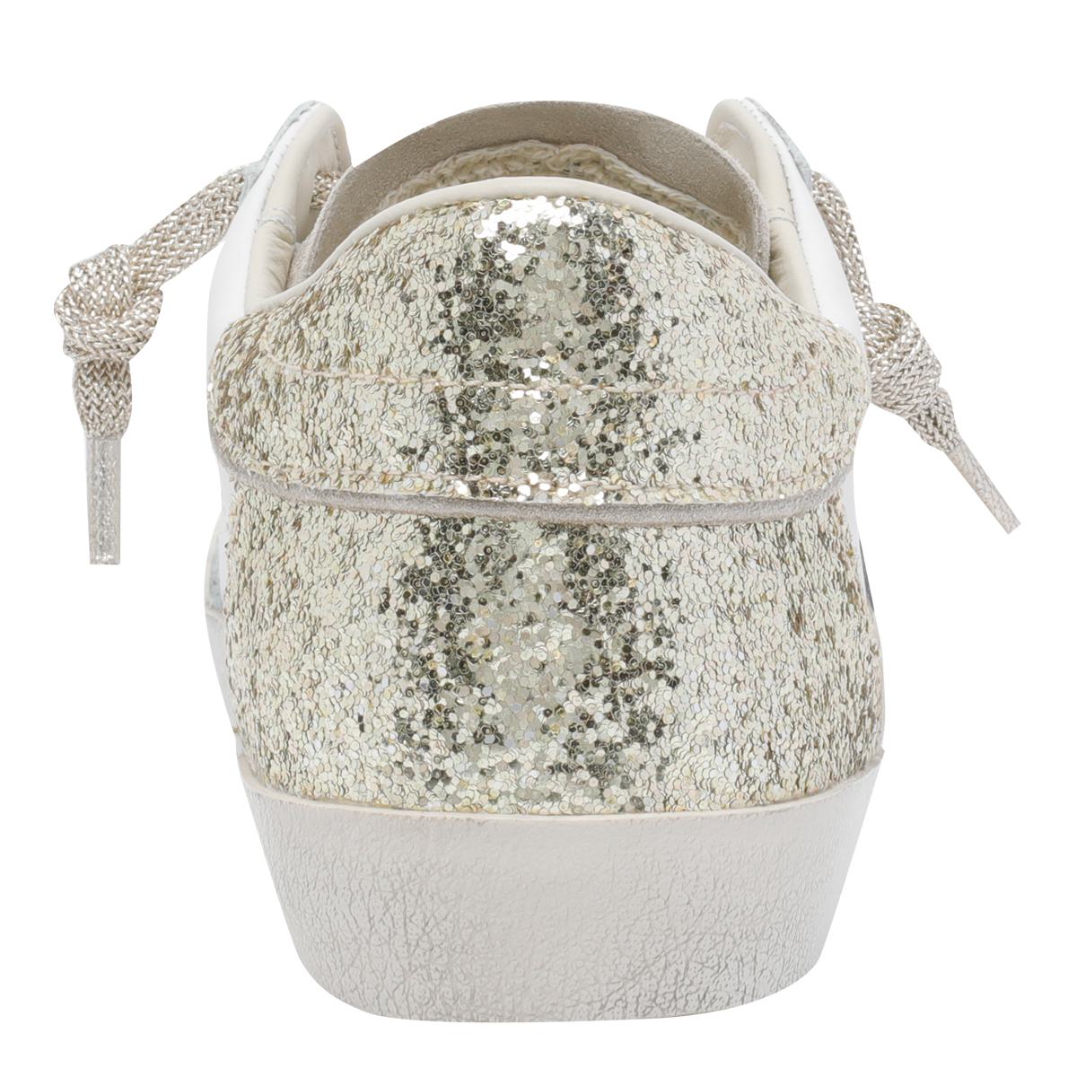 Philippe Model White Prsx Sneakers, Round Toe, Lateral Patch Logo, Paillettes Details, EU SIZE (IT)