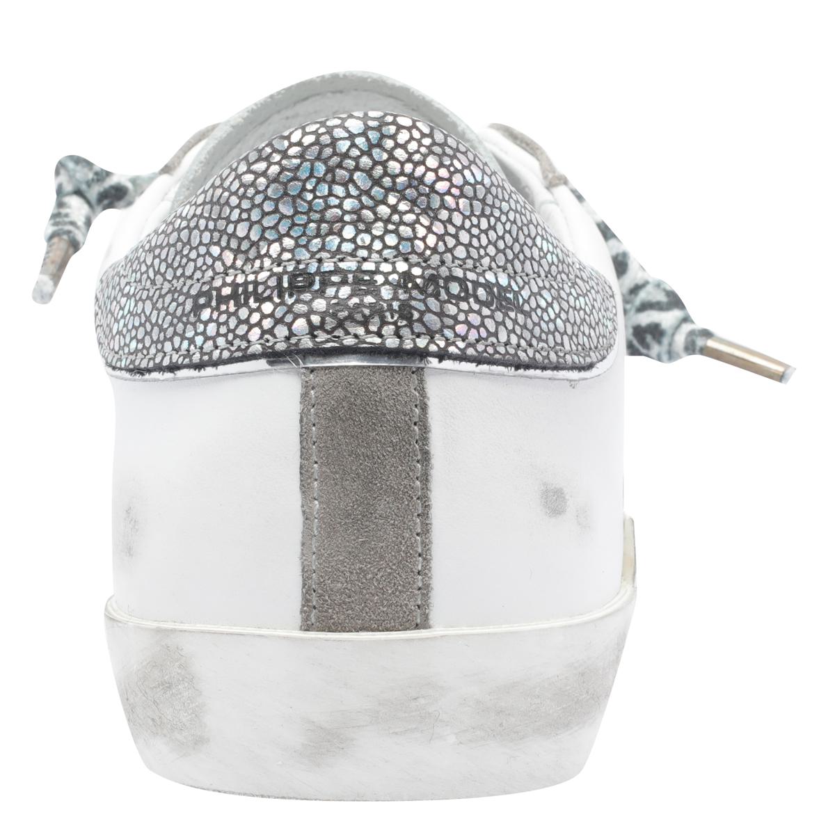 Philippe Model White Prsx Sneakers, Leather Upper, Round Toe, Laces Closure, Glitter Detail On The Back, Logo, EU SIZE (IT)