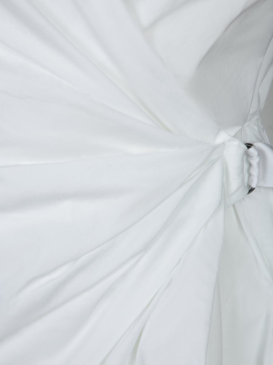 Elegant women's dress by Pinko, featuring an asymmetric cut highlighted by a side knot and decorative buttons that enhance the profile. Perfect for formal occasions and exclusive evenings.