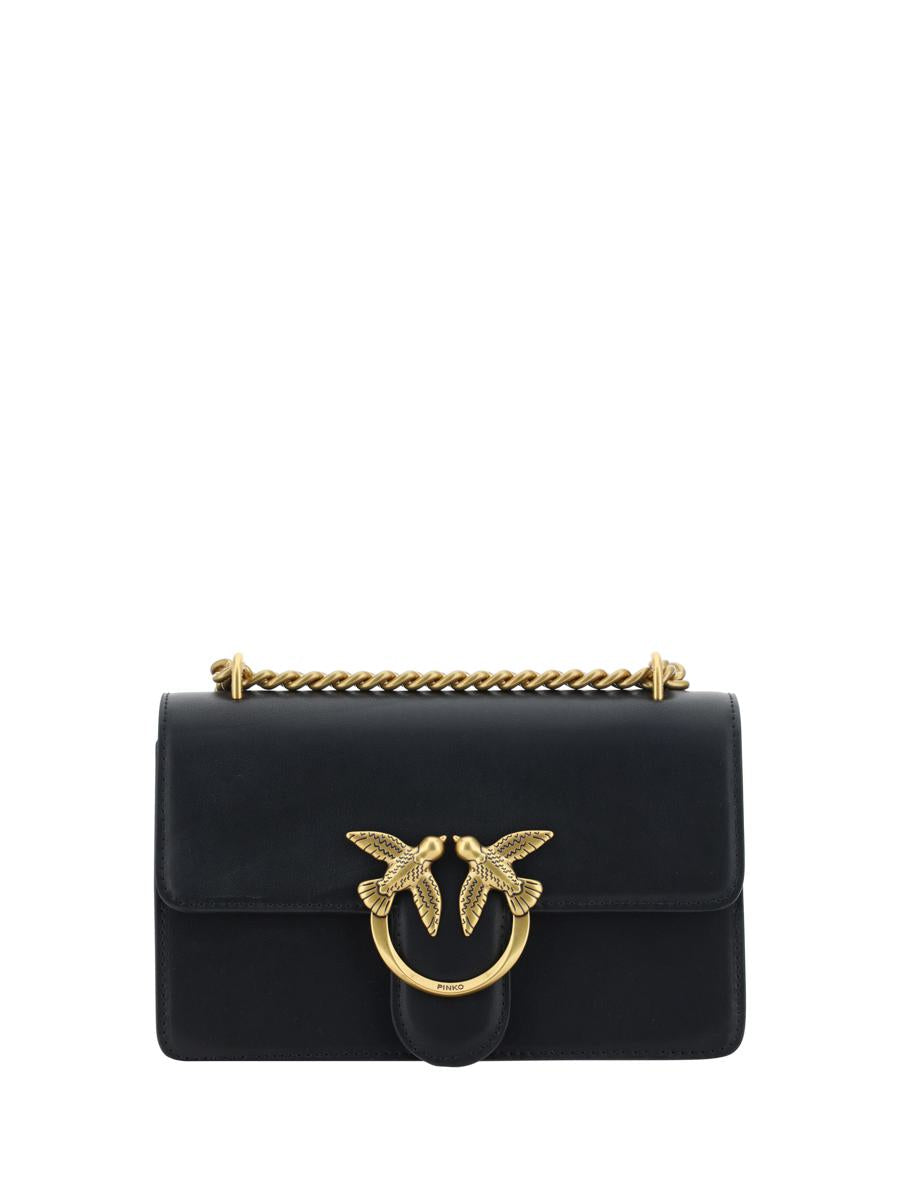 PINKO'S LOVE ONE MINI LEATHER SHOULDER BAG, FLAP FRONT CLOSURE WITH MAGNETIC BUTTON, ICONIC SILVER-PLATED LOVE BIRDS LOGO EMBOSSED ON FRONT, DUAL INTERIOR COMPARTMENT, SLIDING CHAIN STRAP, ICONIC TONE-ON-TONE EMBROIDERED BRAND MONOGRAM ON BACK, ADJUSTABLE AND REMOVABLE FLAT LEATHER SHOULDER STRAP.