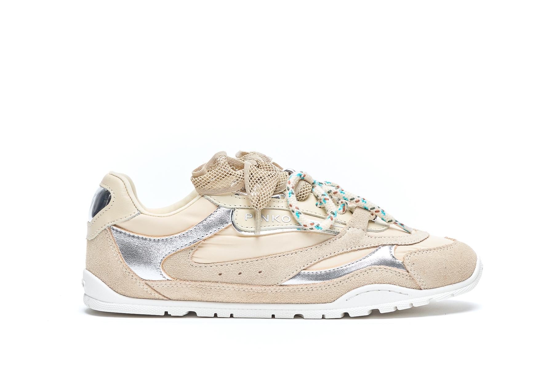 Pinko Beige Yulia Sneakers, Round Toe, Lateral Tone On Tone Logo, Double Laces Closure, EU SIZE (IT)