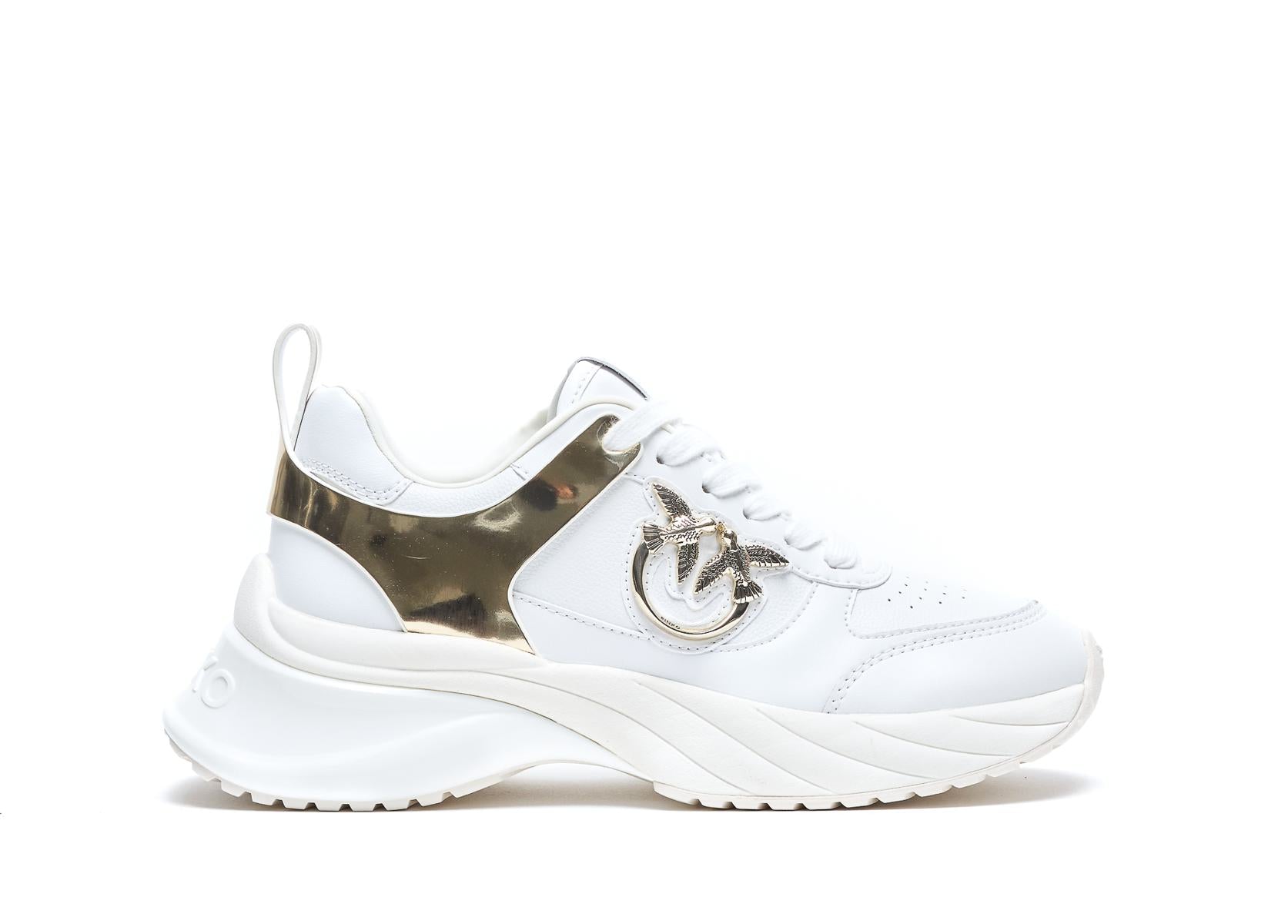 Pinko White And Gold Ariel Sneakers, Leather And Rubber Upper, Rubber Sole, Round Toe, Lateral Logo, Golden Mirrored Details, EU SIZE (IT)