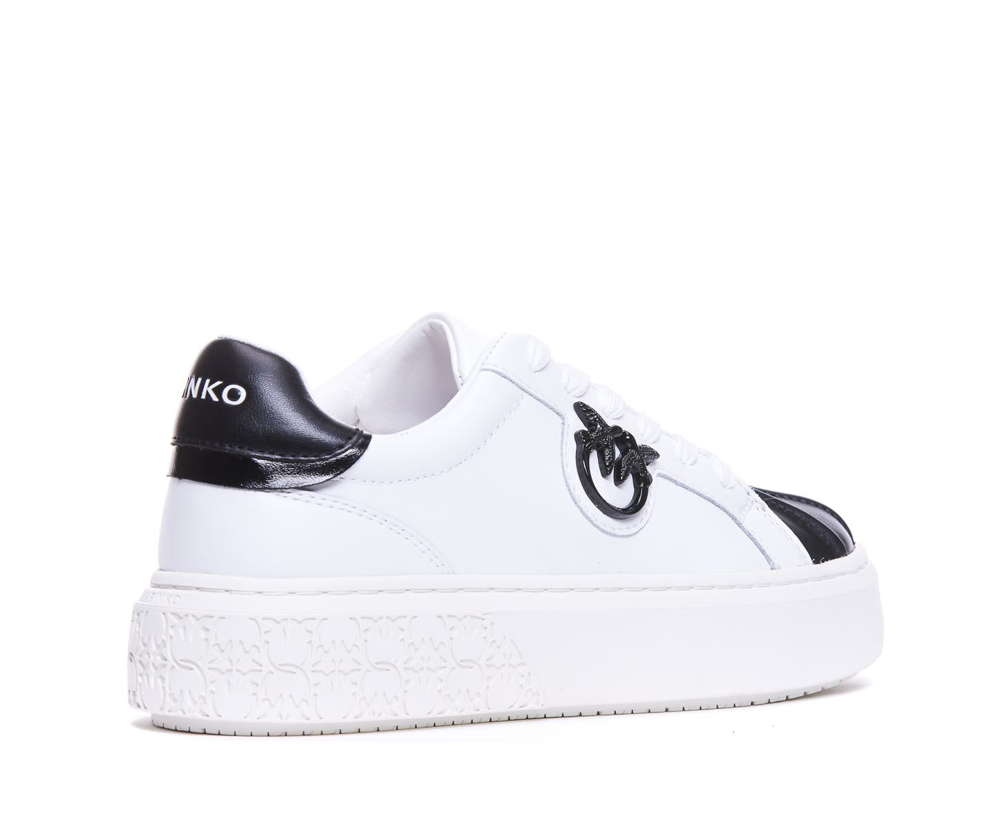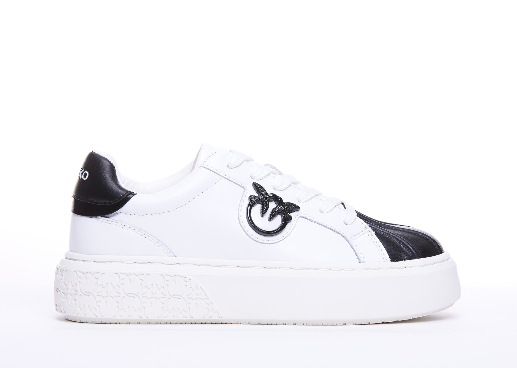 Pinko White And Black Yoko Sneakers, Laces Closure, Lateral And Back Logo, Round Toe, platform 3,5 cm