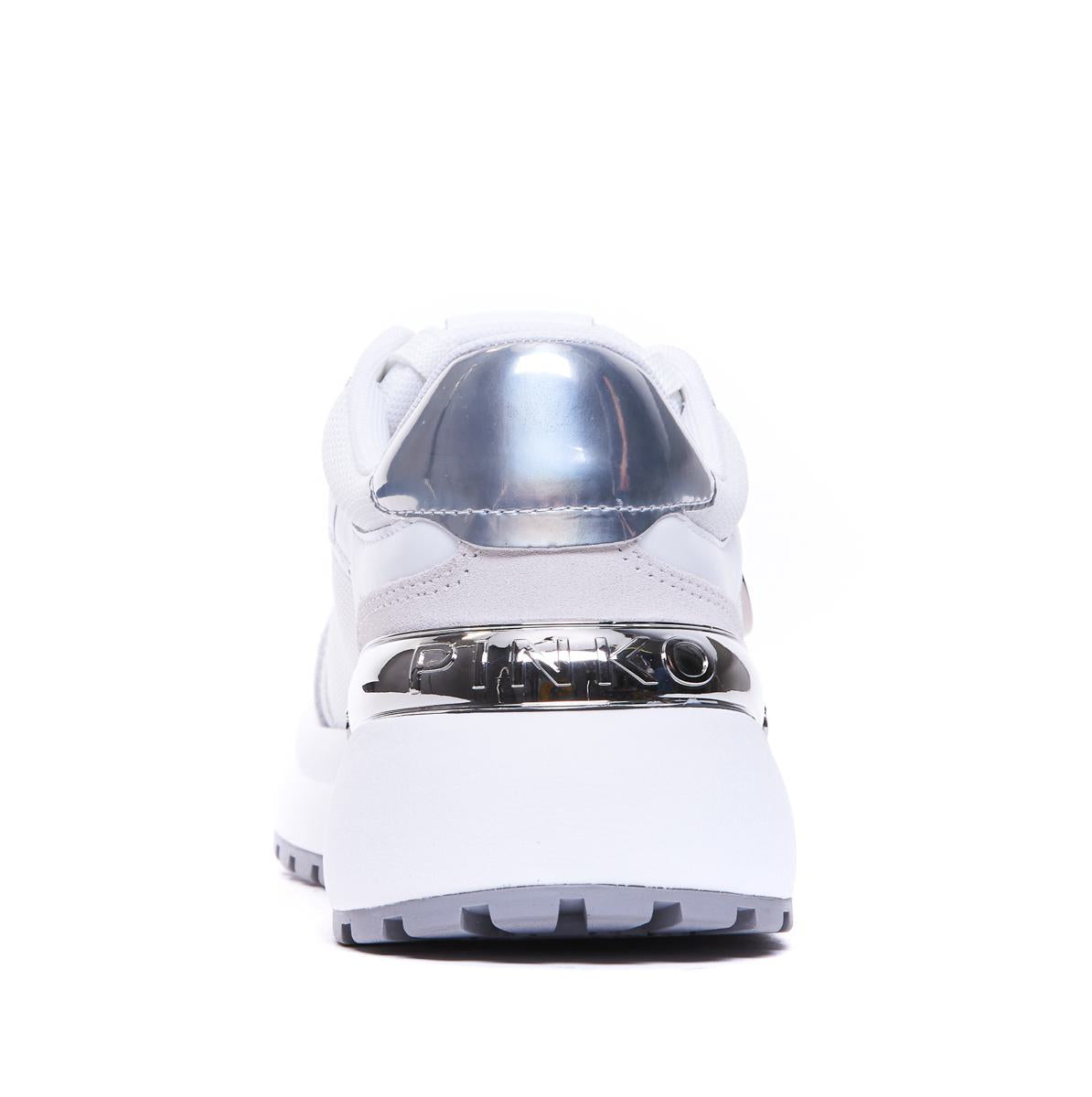 Pinko White And Silver Gem 01 Sneakers, Leather, Rubber And Suede Upper, Rubber Sole, Round Toe, Lace Closure, Tongue And Lateral Logo, Silver Effect, Eu size (IT)