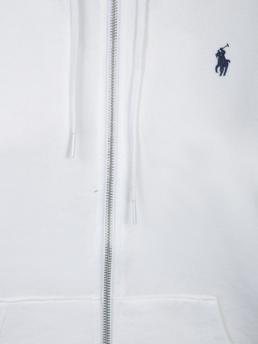 Full-zip hoodie with adjustable drawstring hood, kangaroo pocket. Embroidered logo on the chest.. This white Polo Ralph Lauren hoodie blends comfort with style. The subtle embroidered logo on the chest adds a distinctive touch, while the convenient kangaroo pocket and adjustable hood make it perfect for any casual occasion