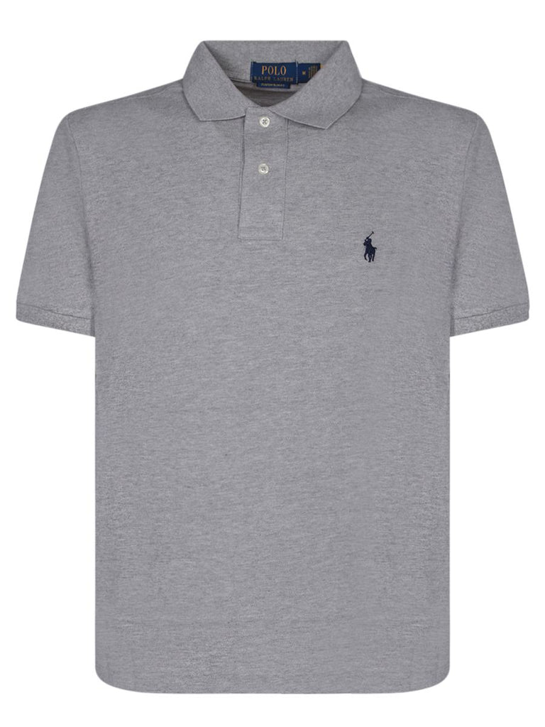 Short sleeve polo. Piquet fabric. Ribbed collar and cuffs. Two-button placket. Embroidered logo on the chest.. This elegant Ralph Lauren polo is crafted in premium grey piquet fabric, featuring a classic collar and a refined two-button closure, embellished with the iconic embroidered knight logo on the left chest.
