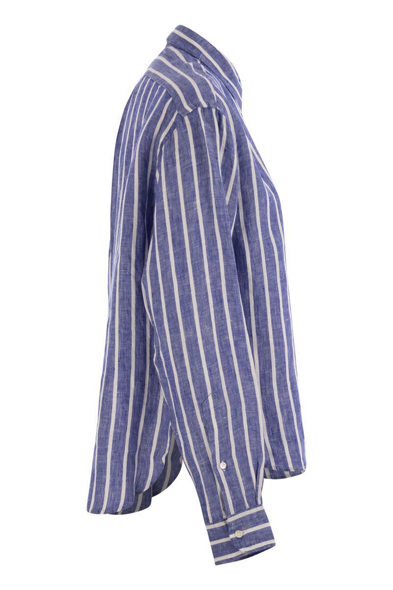 This breathable linen shirt features a short, loose fit and an all over Vichy pattern. The garment is finished with the exclusive embroidered pony on the left chest. The wide, short shirt has a relaxed cut on the chest, down to the hips. - Pointed collar - Button placket - Long sleeves with button cuffs - Low shoulders - Back yoke with cannon pleats - Hemmed flap - Exclusive embroidered pony on the left chest side DESIGNER ID: 211935130 005