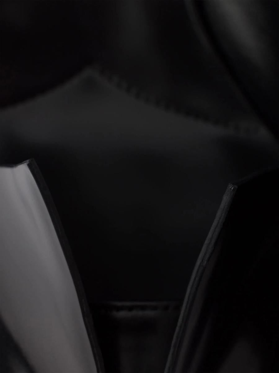 Prada`s black brushed leather pumps embody architectural elegance with a tapered silhouette and distinctive details. The 55mm varnished heel and rubber-tipped leather sole offer comfort and style, while the screen-printed logo adds an iconic touch.