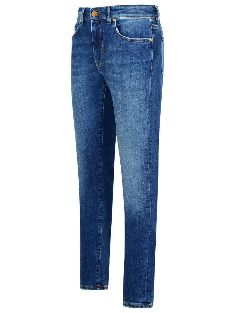 Belt loops, five-pocket concealed flap button and zip closure, contrast double needle stitching, logo patch on the back, tight leg