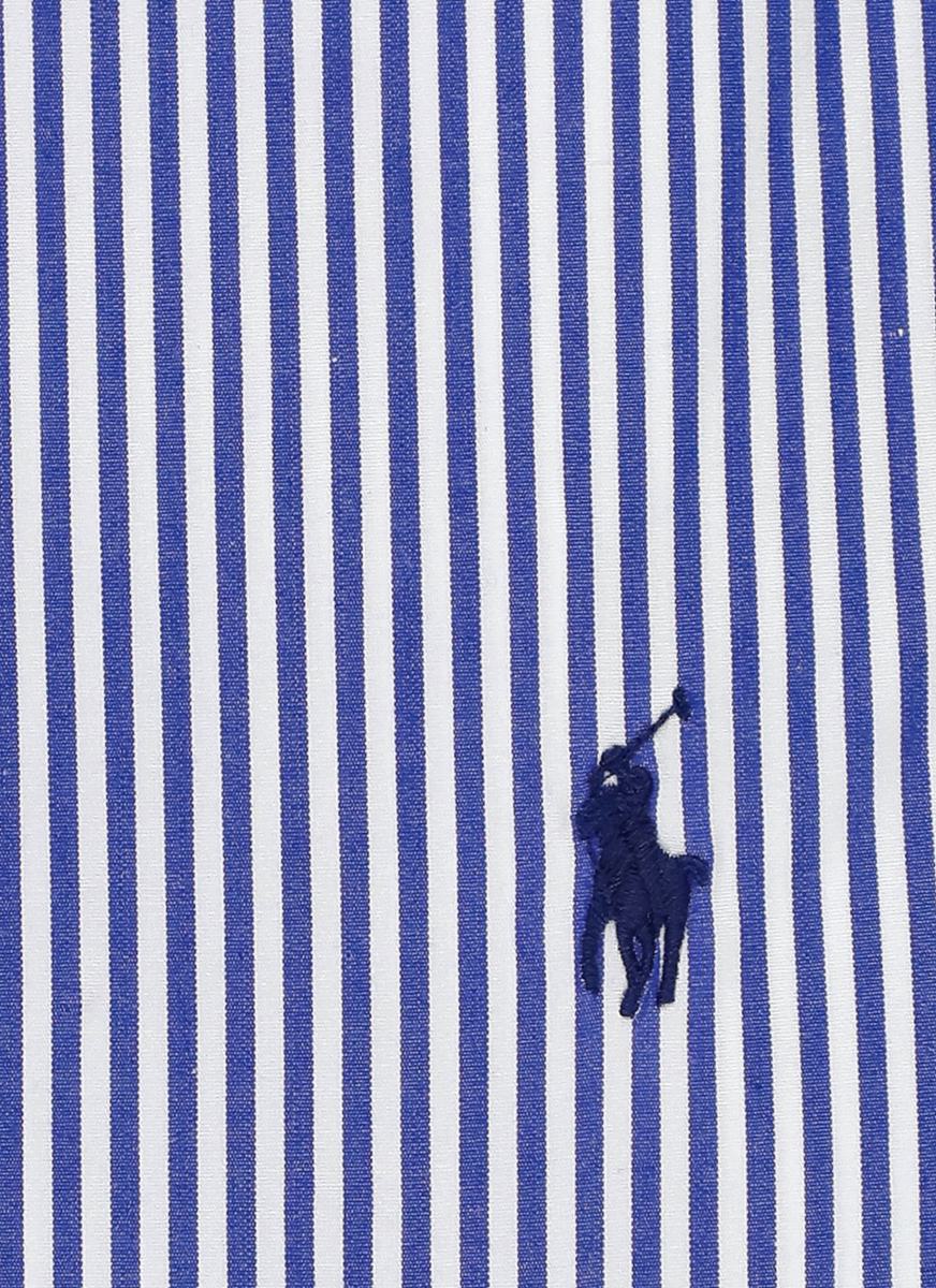 - Blue Ralph Lauren cotton shirt for man - Button down collar - Long sleeves with buttons at cuffs - Front contrasting color embroidered iconic Pony - All-over contrasting color striped pattern