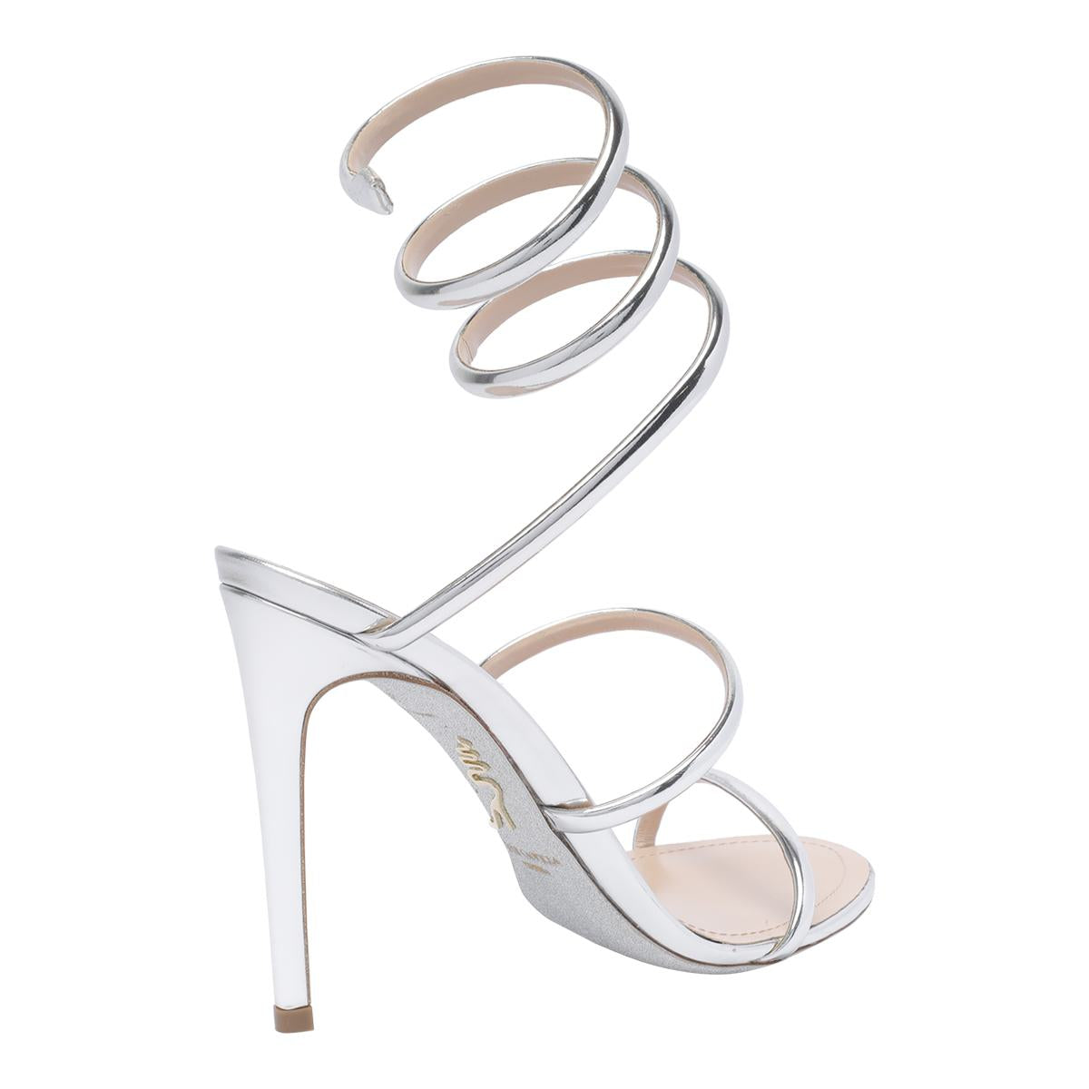 Rene' Caovilla Silver Cleo Pump Sandals, Pointed Toe, Silver Effect, Leather Upper, Heel: 10,5 cm