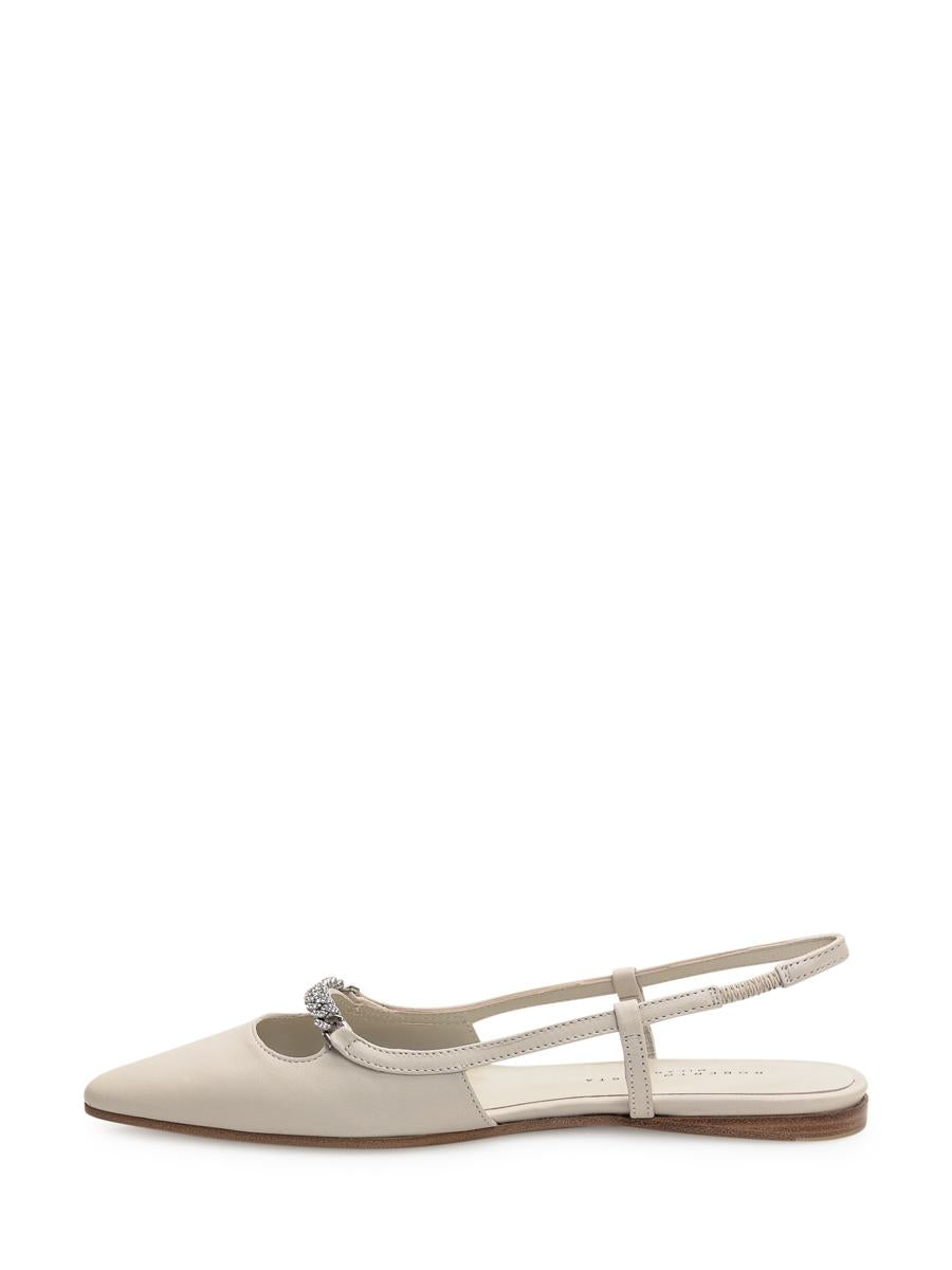 Leather ballerina. Ankle strap with buckle. Pointed toe design. Logo footbed. Flat leather sole.