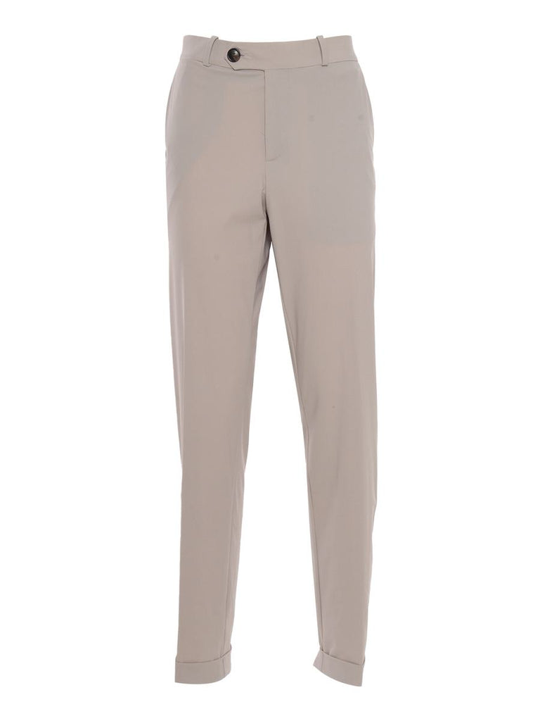 Chino brown pants Elegant brown narrow-leg chino trousers with belt loops and zip button. Welt pockets.