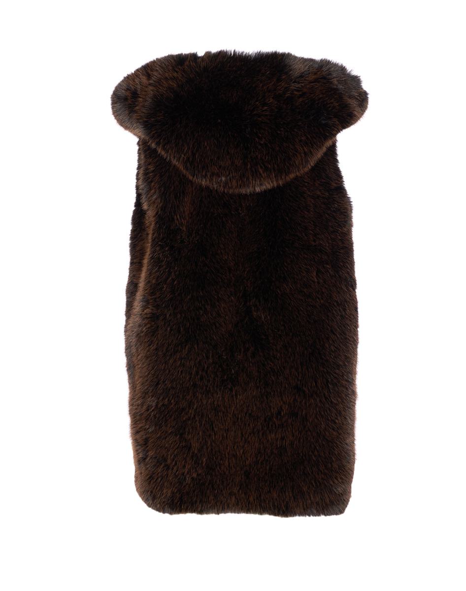 Sword Ebony Black Faux Fur Vest, Hook Closure, Hooded, Fur Effect, EU SIZE (IT)