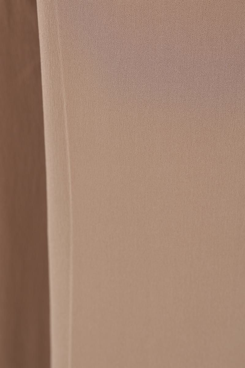 Saint Laurent's straight-leg trousers crafted in light brown silk crêpe. Featuring hook / button / zip closure, belt loops, multiple pockets, front pleat, central pressed crease and fully lined interior.
