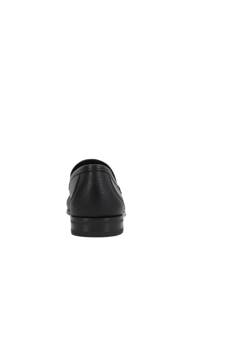 Ferragamo loafers crafted in black grained leather. Featuring a round-toe silhouette, leather lining and rubber sole. The design is completed by the unmistakable ruthenium-tone metal Gancini horsebit on front.