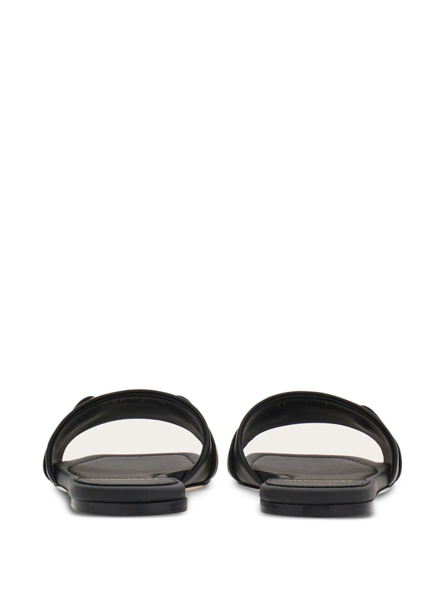 Ferragamo presents these sandals made of very soft smooth calfskin with square-profile Gancini ornament.