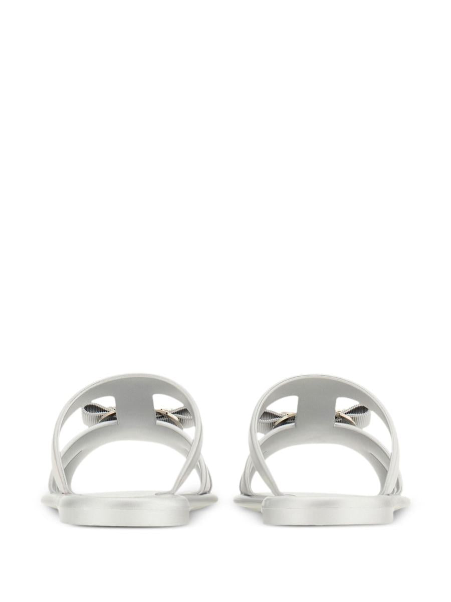 Perfect for summer, this colorful rubber slide flat combines style and practicality. The bands on the foot are embellished with the iconic Vara bow with grosgrain effect and gold plaque, adding a distinctive touch. The lightweight and versatile design makes it ideal for any occasion.