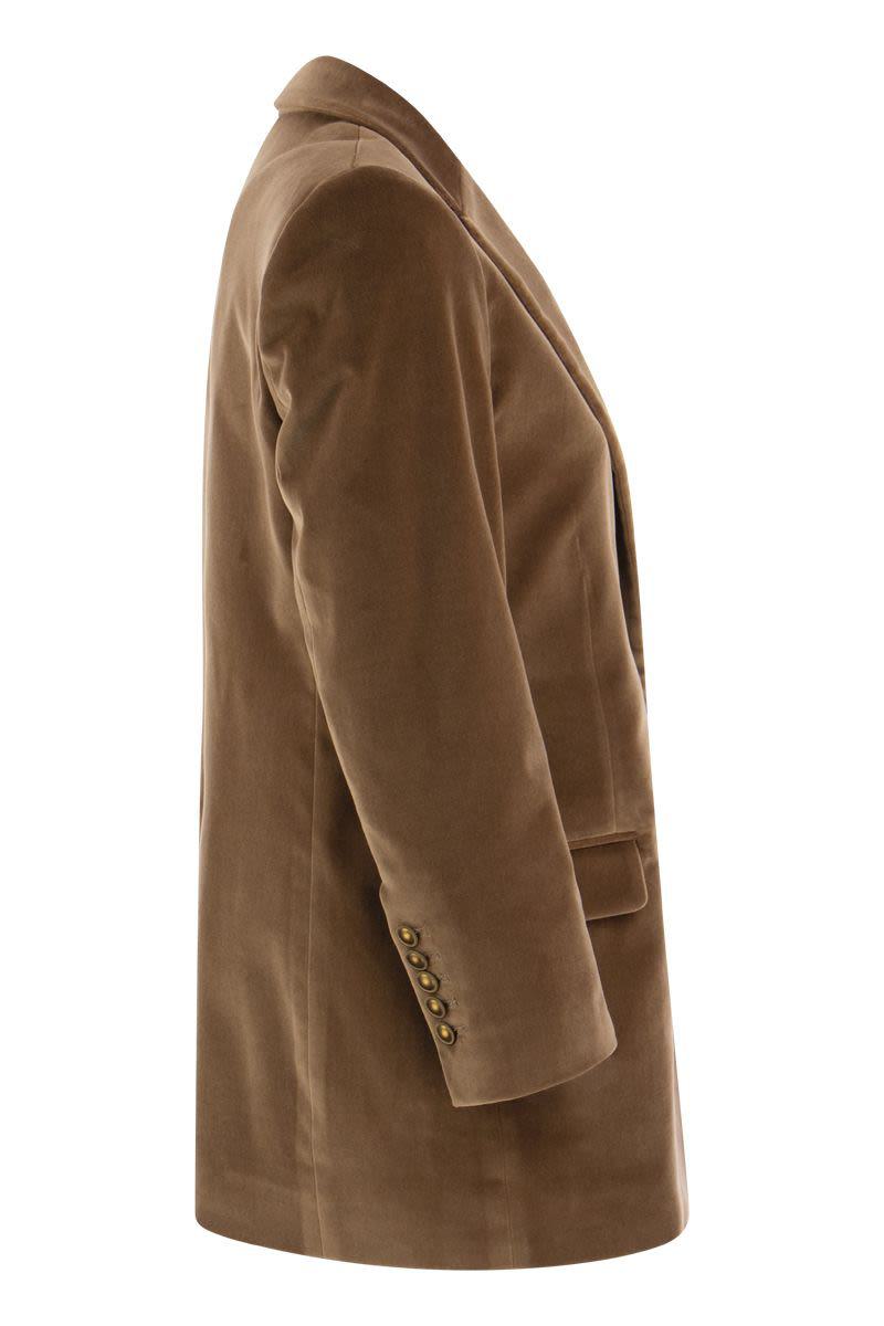 Saulina is a historic Italian brand, synonymous with quality and creativity. Velvet single-breasted jacket characterised by a loose fit. - Single-breasted jacket with 2 buttons - Soft line - Multipockets - Semi-lined interior DESIGNER ID: SAA016 2