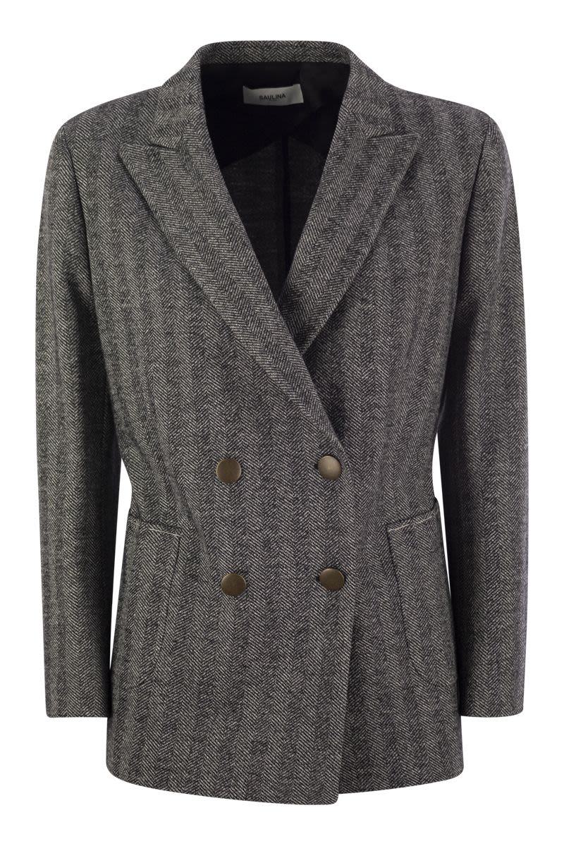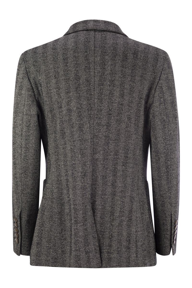 Historical Italian brand, synonymous with quality and creativity. Double-breasted jacket with bronze-coloured buttons and regular fit. - Herringbone workmanship - Double-breasted - Button closure DESIGNER ID: SA8118 6