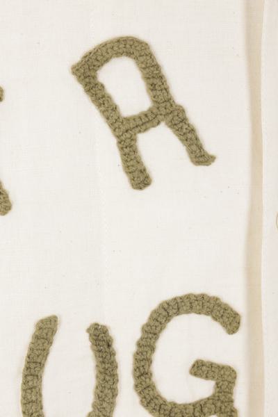 Story mfg.'s oversized short-sleeved shirt crafted in ecru cotton and linen with Tree Hugger lettering embroidery at chest. Featuring cuban collar, button closure and straight hem.