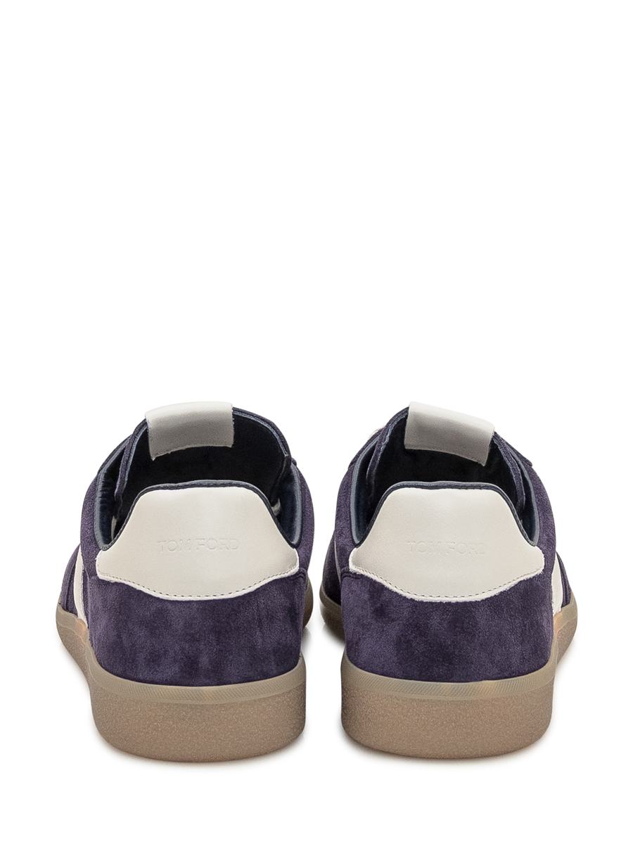Tom Ford low top sneakers made of soft blue suede with contrasting cream details and beige rubber sole.
