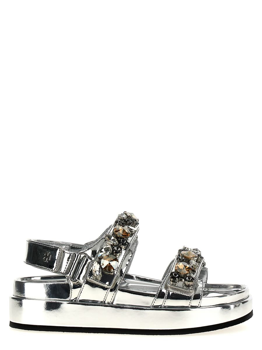 'Kira' leather sandals with jewel applications, adjustable bands with velcro, rubber sole
