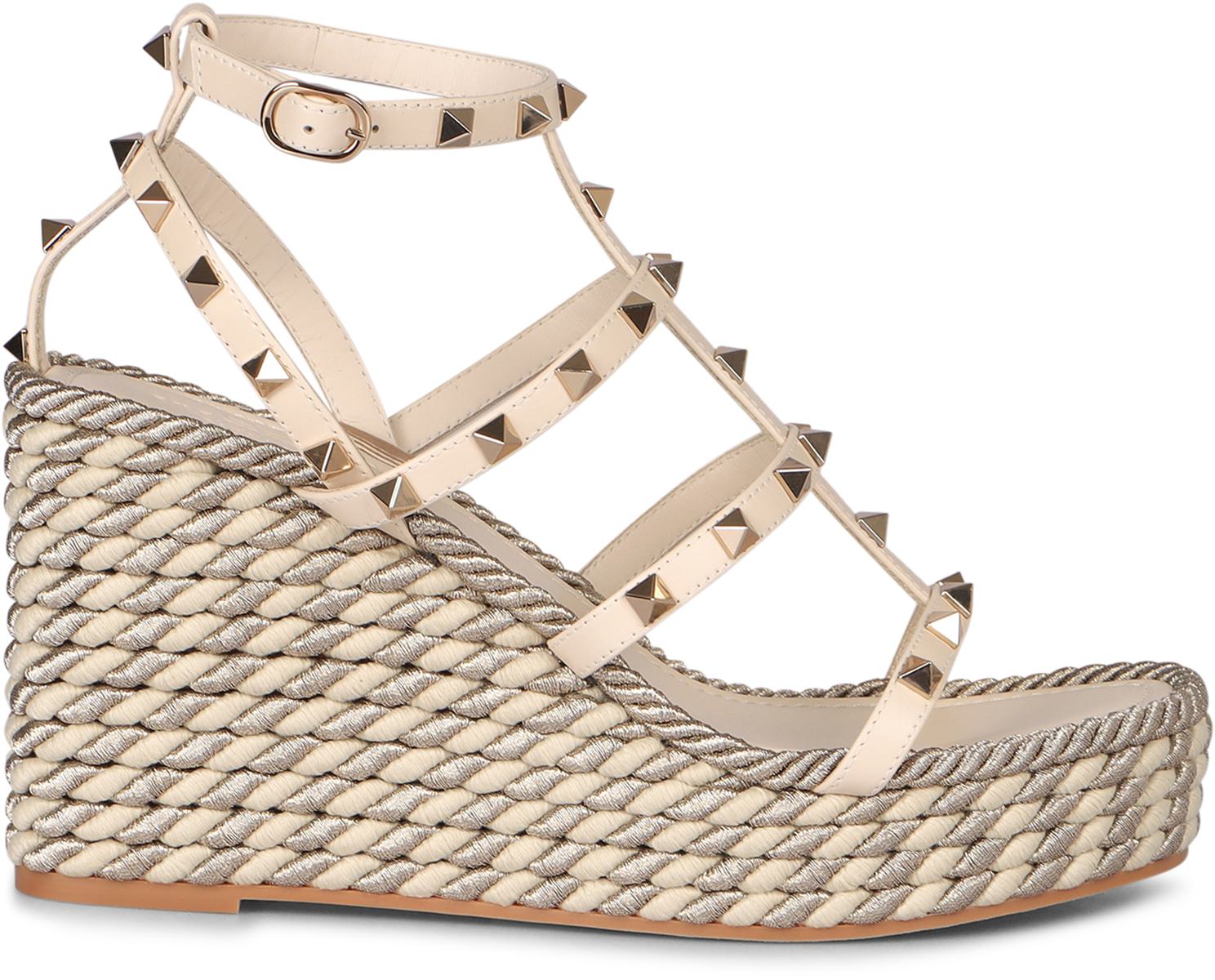 Rockstud leather wedges