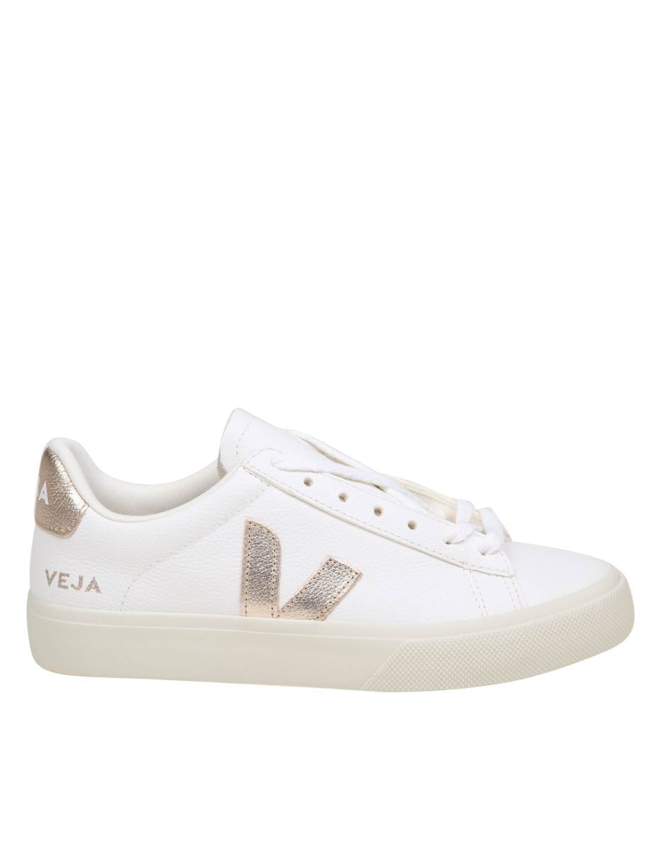 Leather sneakers Model with round tip White and platinum color Details in platinum color Insole: Amazonian rubber (11%), sugar cane (42%), recycled E.V.A.* (11%) and organic cotton (12%) Sole: Amazonian rubber (40%), recycled rubber (10%), silica (23%), synthetic rubber (11%) and others (16%) Lace closure Side logo Fabric interior Rubber sole