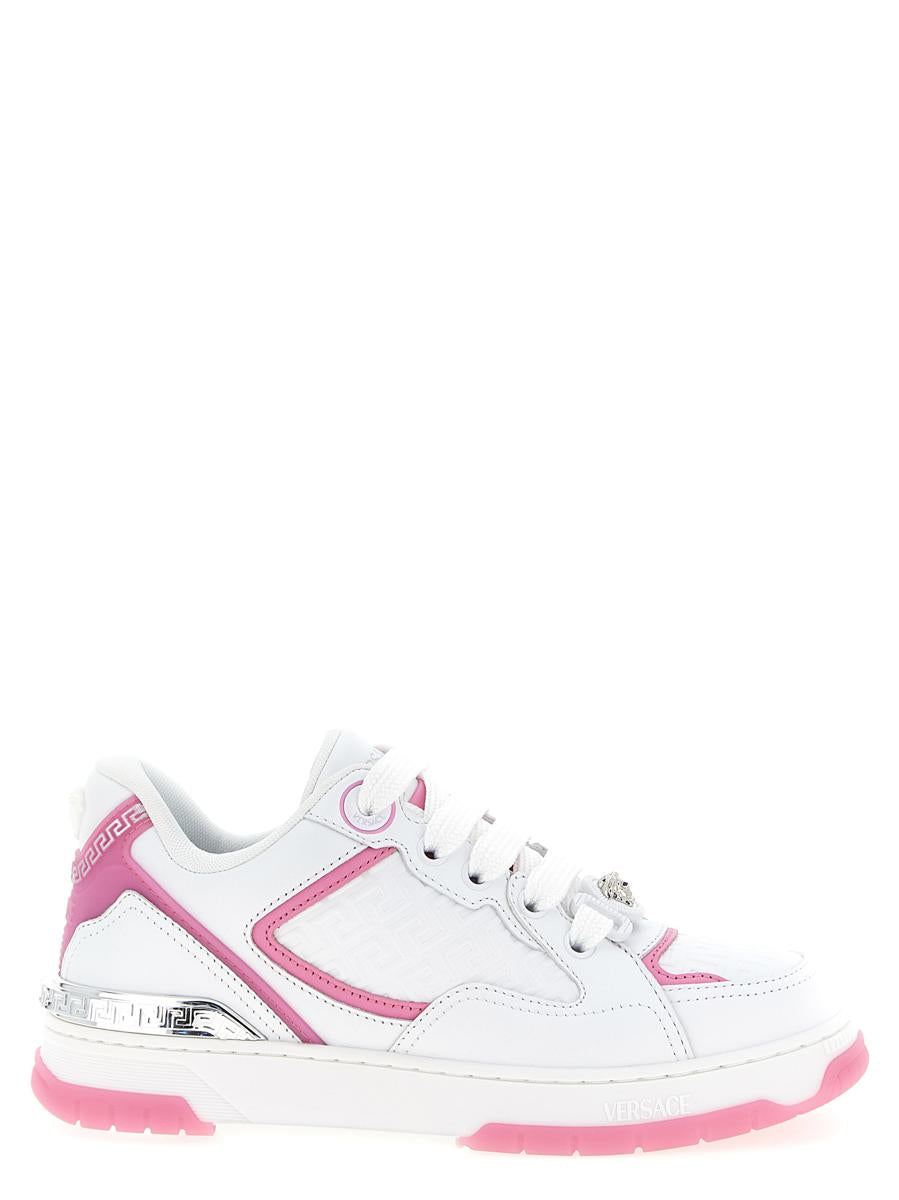 'Biggie Basket' leather sneakers with high frequency Greca motifs, lace-up closure with 'Medusa Biggie' detail, back metal hardware, rubber sole