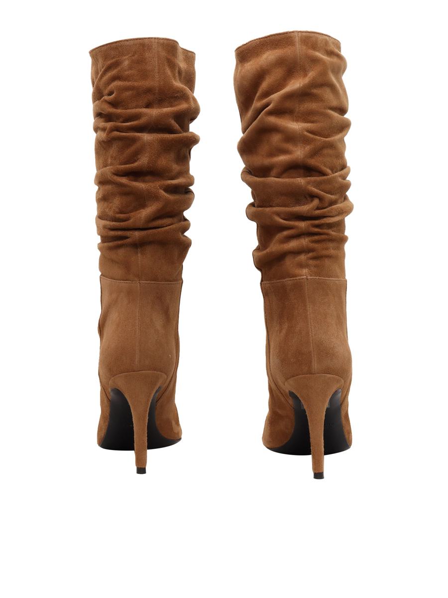 Curled brown boot Brown 3/4 curled Via Roma 15 boot in pointed suede with stiletto heel.